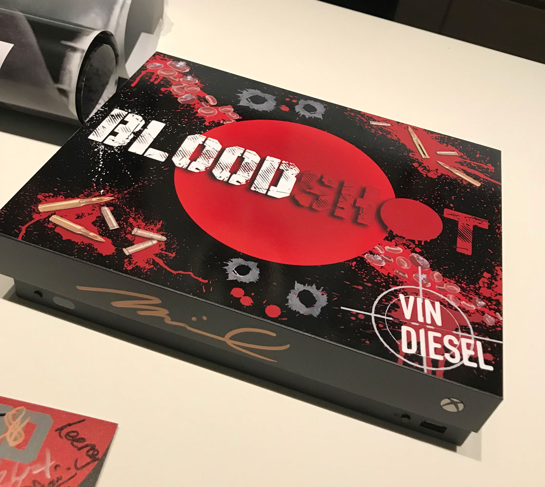 Or this Vin Diesel-signed, Bloodshot customized Xbox console, revealing the film's production logo… Another big ticket item: