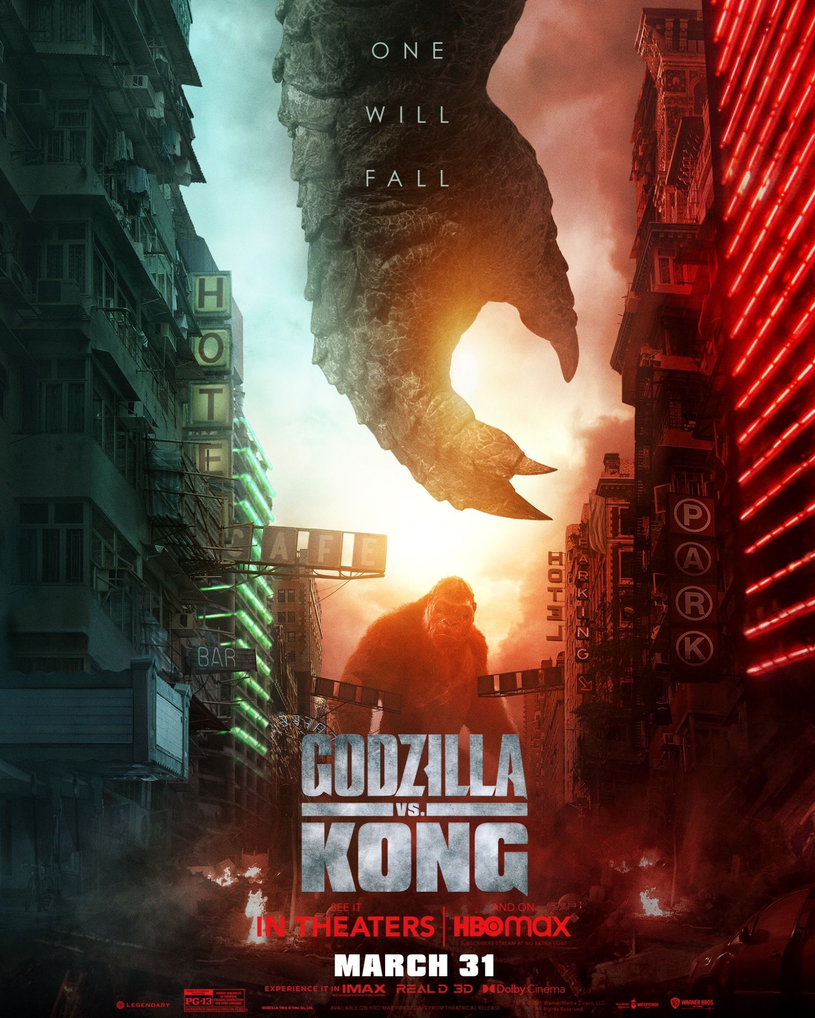 - A Godzilla vs. Kong Poster. Copyright: © 2021 LEGENDARY AND WARNER BROS. ENTERTAINMENT INC. ALL RIGHTS RESERVED. GODZILLA TM & © TOHO CO., LTD.