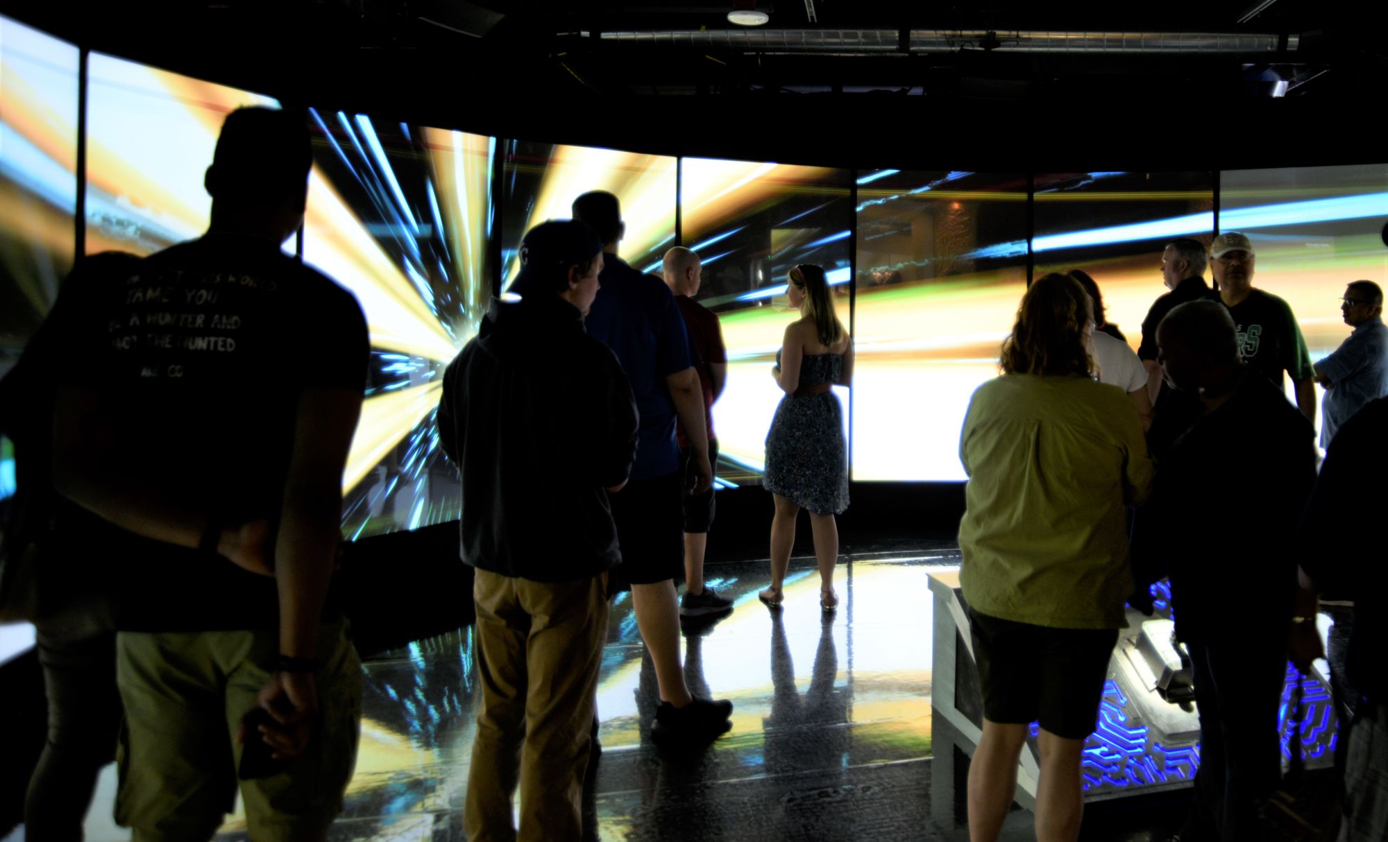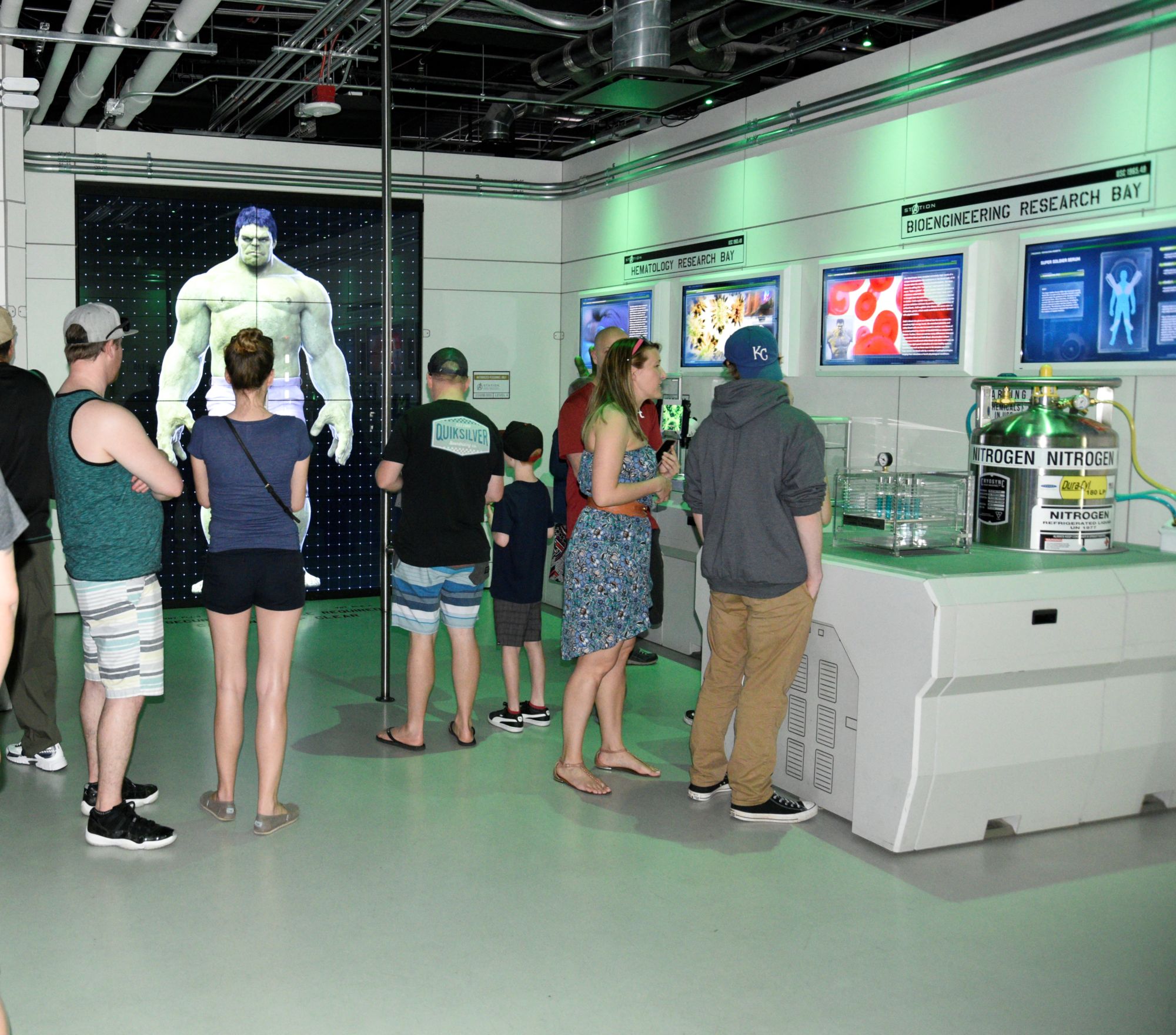 The exhibit is billed as "interactive", but there weren't that many interactive elements to the tour that we were able to see. There were a few things within the exhibit that you could do, like making a projected Hulk slam his fists or a brief VR session where you're in an Iron Man suit. The biggest one is a little game you play at the end with your group and you fight Ultron bots. As far as being "up to date" with the movies, it didn't look like there was anything from Captain America: Civil War or beyond — but I was told that they are always adding more.