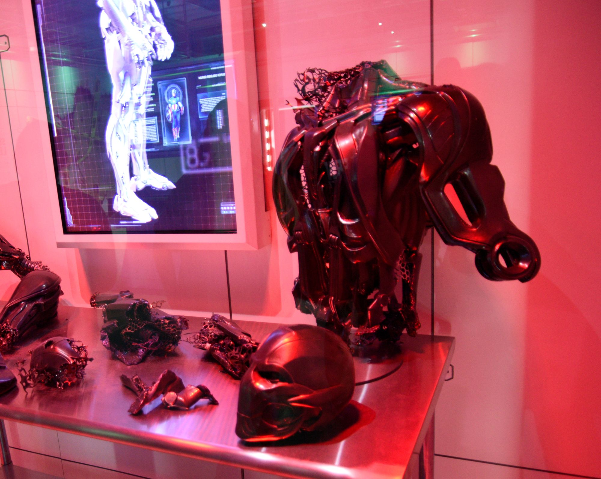 We were given a tour through the exhibit by a tour guide who called himself Agent Blade and who clearly loved his job. We were then taken through each room with tons of authentic props and costumes from the various Marvel movies. On each of the walls there is a ton of information where you can learn details about all of your favorite characters. Nearly everything that you see was used on the set of various movies. There are different rooms for each Marvel characters with lots of displays on the walls that can teach you about the characters.