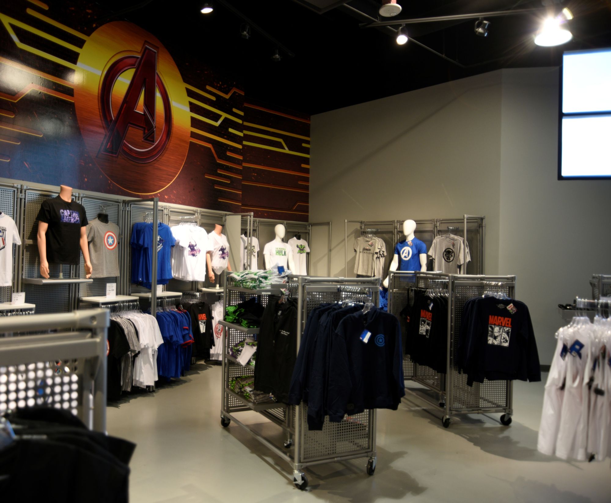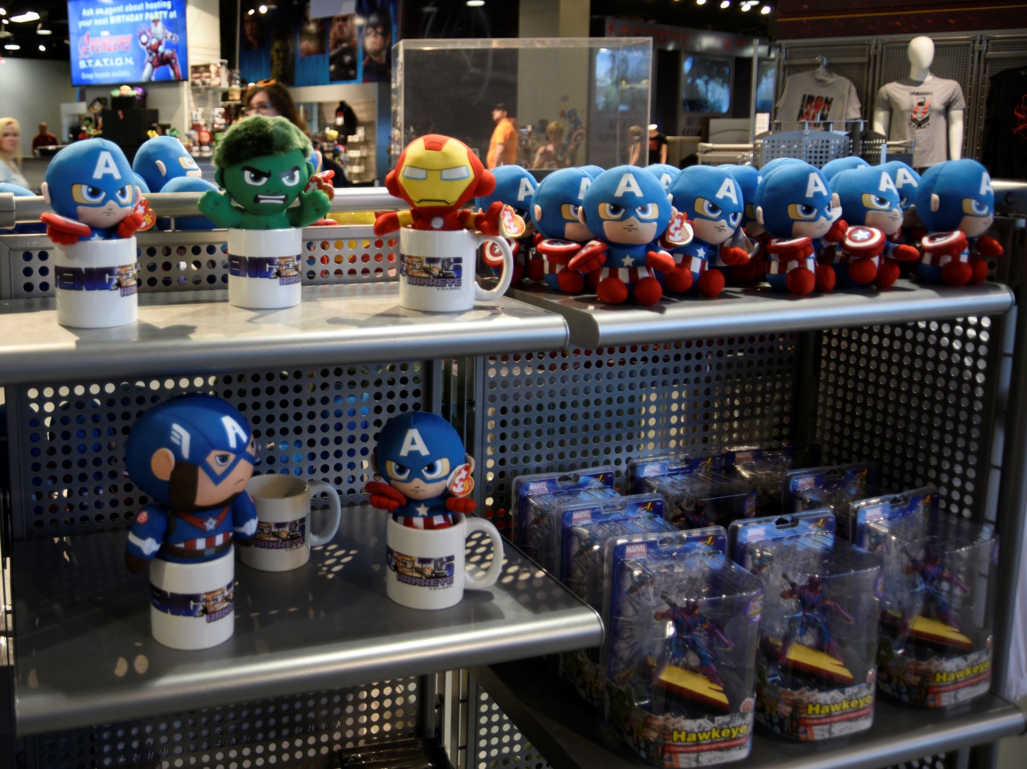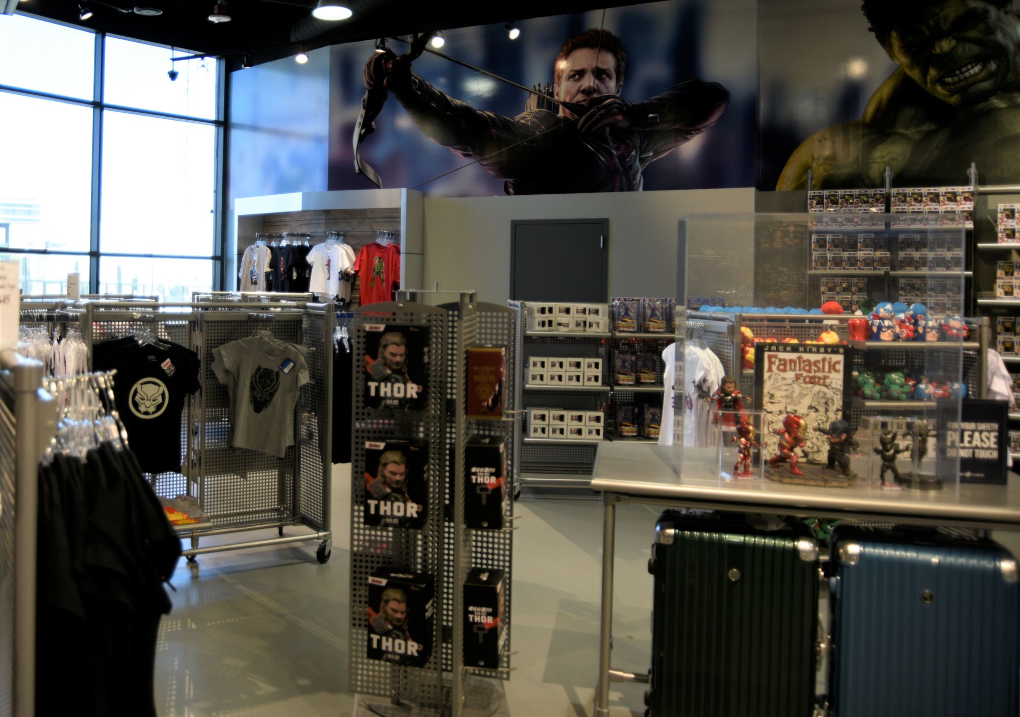 We walked into one of the biggest merchandise rooms either of us had seen — much bigger than the Marvel store on at Disney Springs, but lacking in terms of merchandise. The thing they were lacking the most was any clothing for women, with there only being a piece or two.