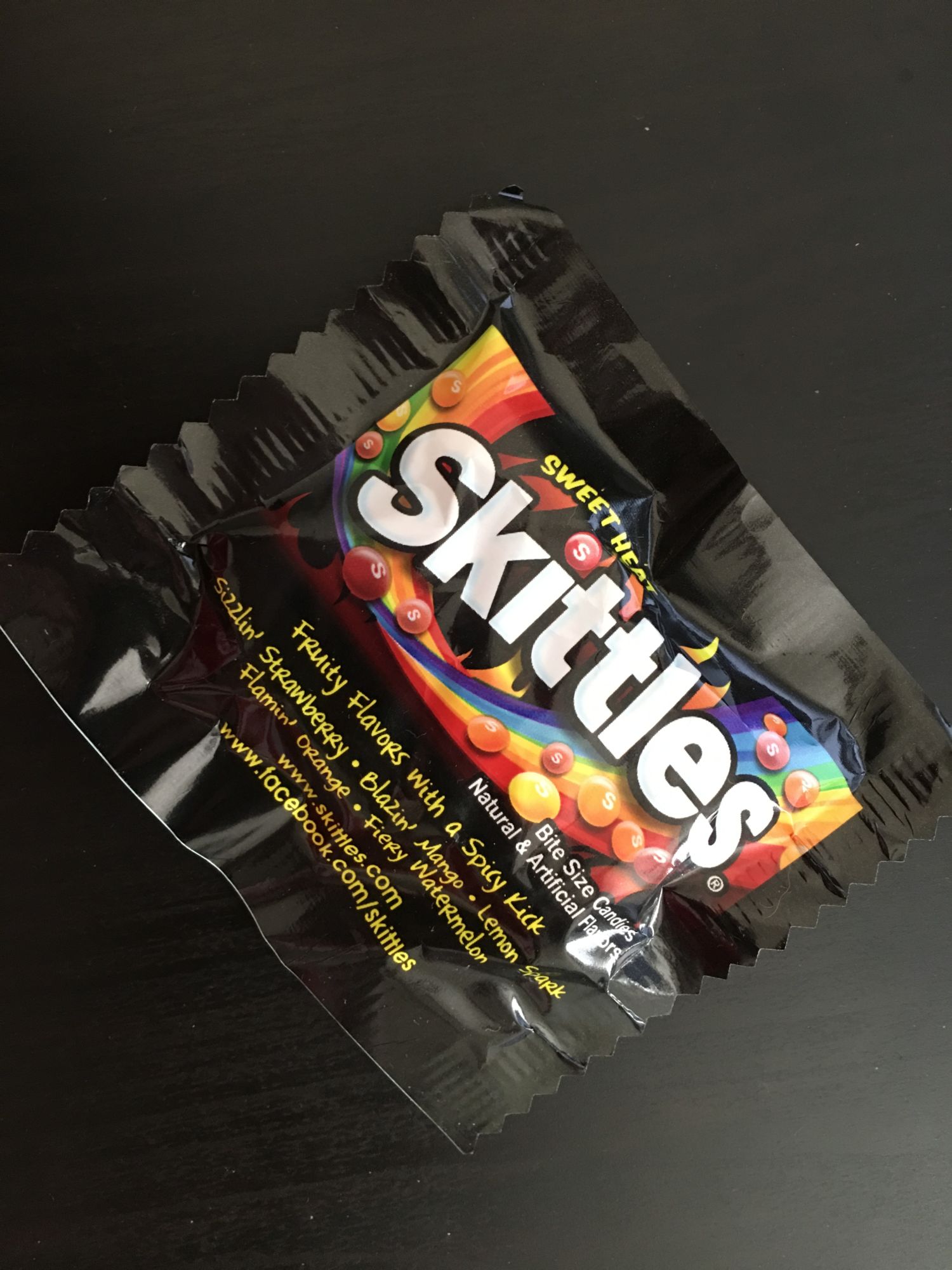 The sweet heat was correct. They don't offer a big, spicy punch, though — it's like a mild barbecue kick. My boyfriend wasn't a fan of them, but overall I enjoyed them. Would I buy them if I saw them again? Probably not — I still prefer regular skittles.
