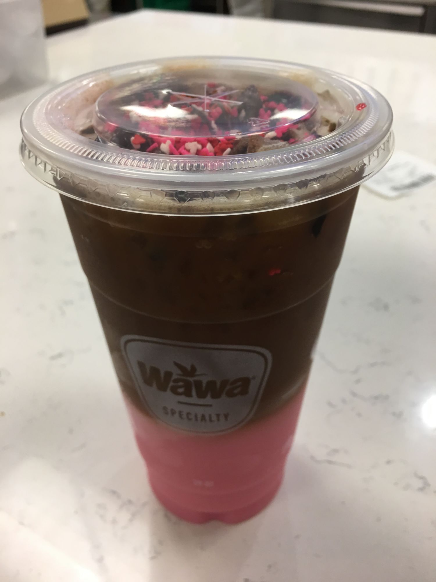 For a limited time, Wawa is serving up some special Valentine's Day treats for you (and maybe someone you love). They're blending together rich chocolate with raspberry to make some pretty tasty drinks — lattes, hot chocolate, coffee, cappuccinos, and macchiatos. I went for the iced macchiato since, well, look at it!