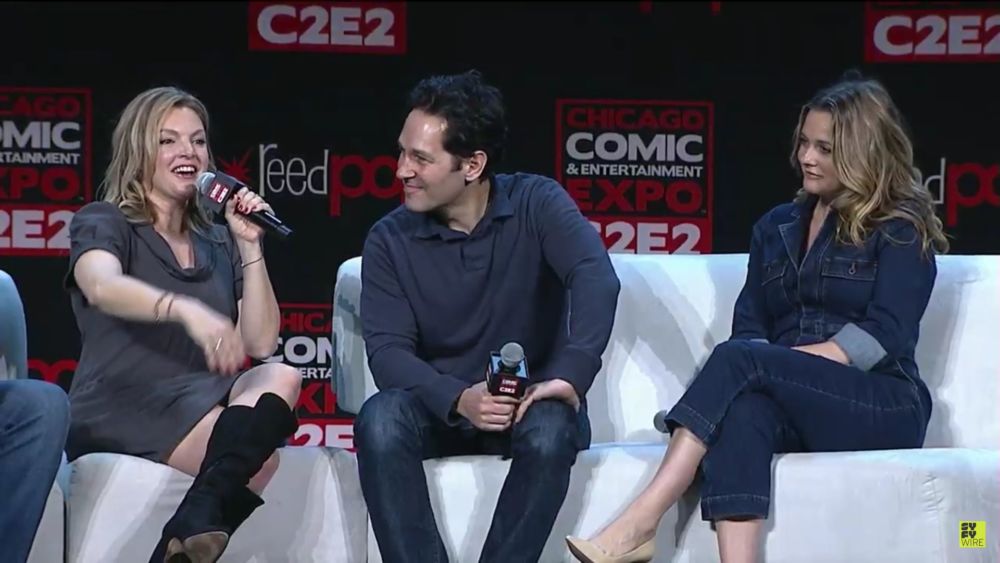 It is also Paul Rudd's first Comic Con of any description, and he arrived late to the panel, apologizing and wondering why it took him so long to write his name so many times when it's only eight letters long.