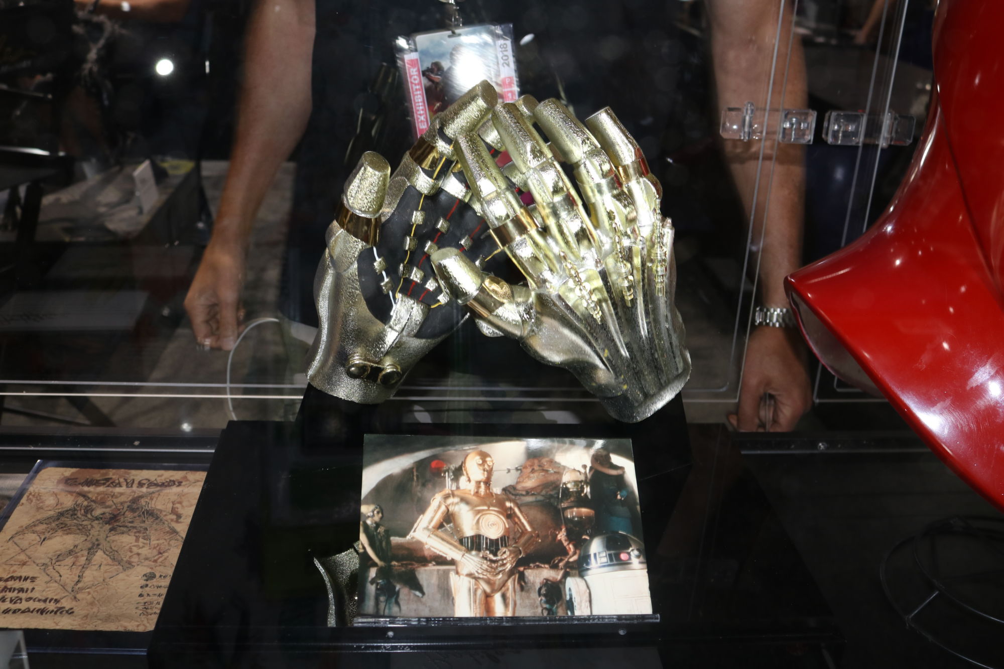 C-3PO's hands are from Return of the Jedi. "They were made at ILM, screen used, and George Lucas himself consigned this display and donated them to the prep school that his daughter was attending in the mid-'80s," Brian informs me.