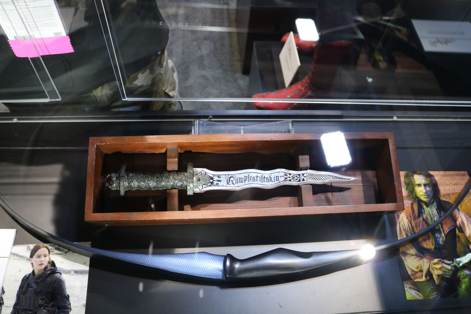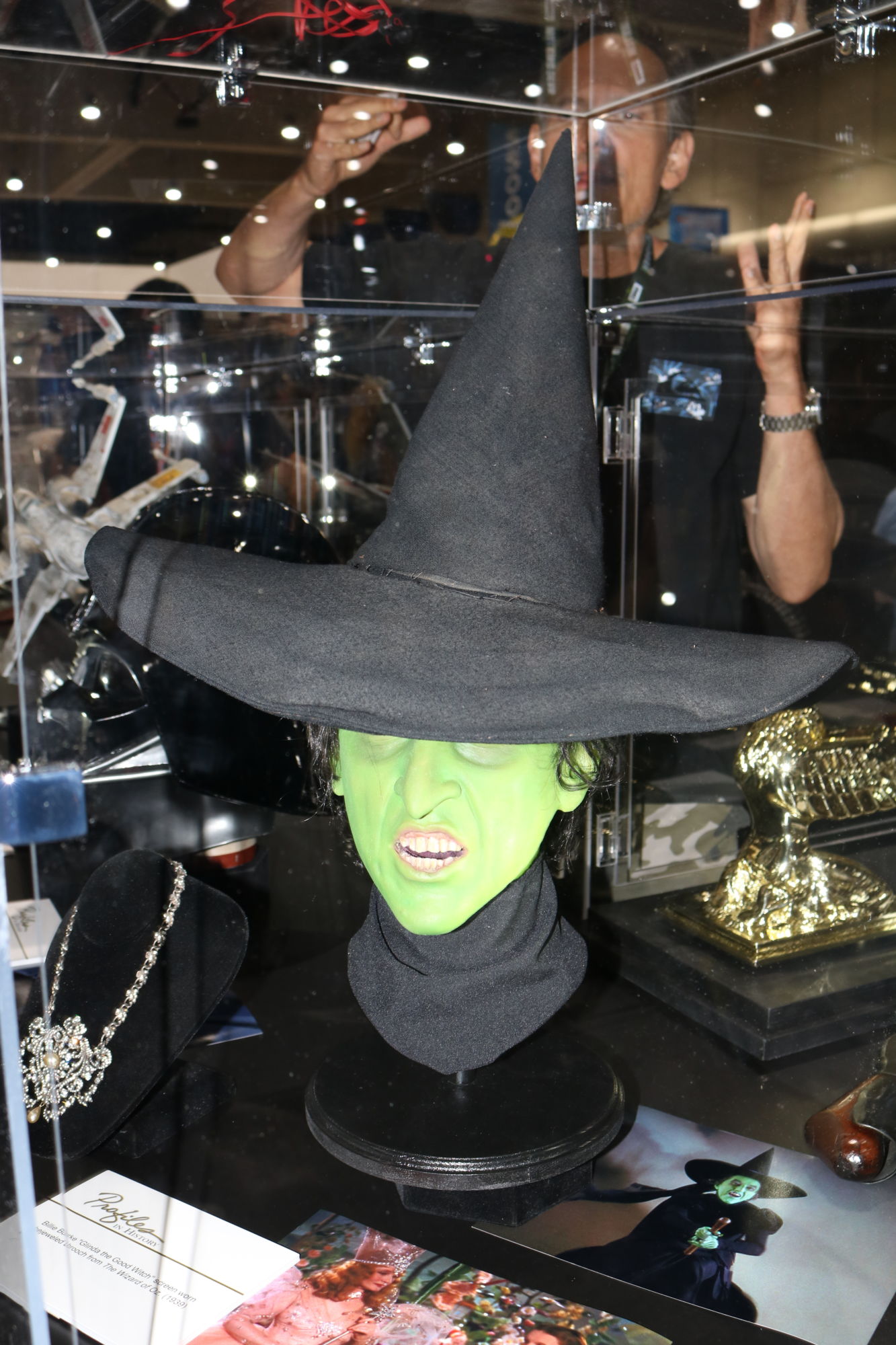 Another great piece of Hollywood History that we have here is The Wicked Witch of the West's hat. This hat has been in the collection of David Weiss, the liquidator, who was responsible for selling the entire backlot of MGM in 1970. Right next to that is Glenda the Good Witch's Brooch, from Wizard of Oz as well.