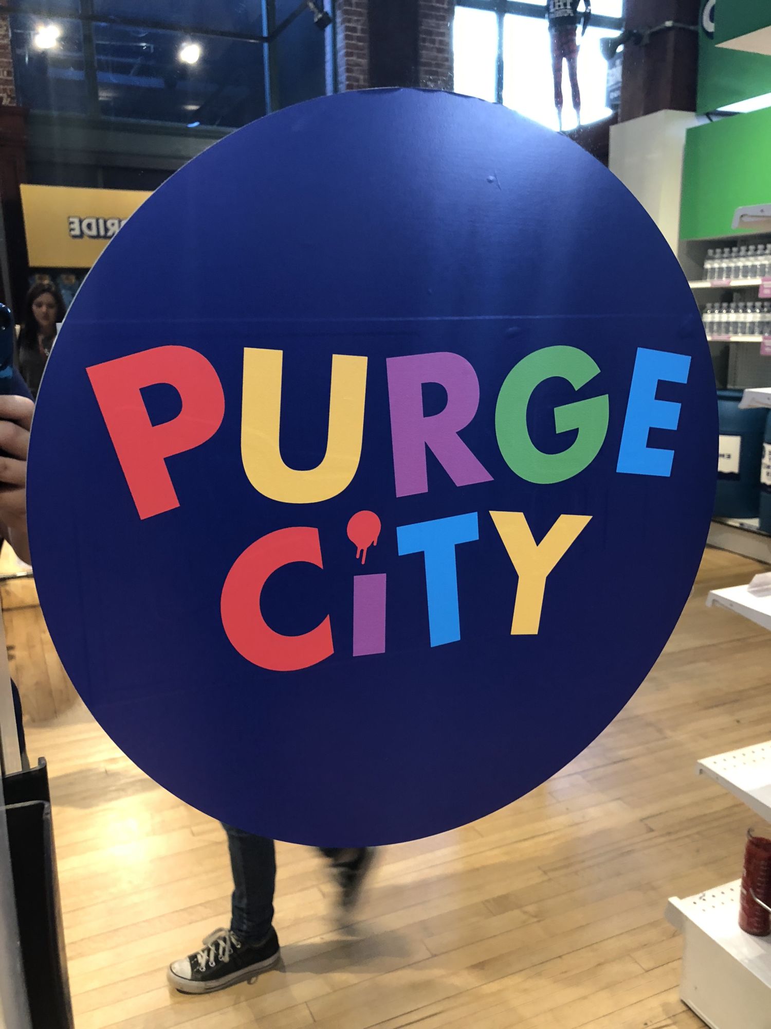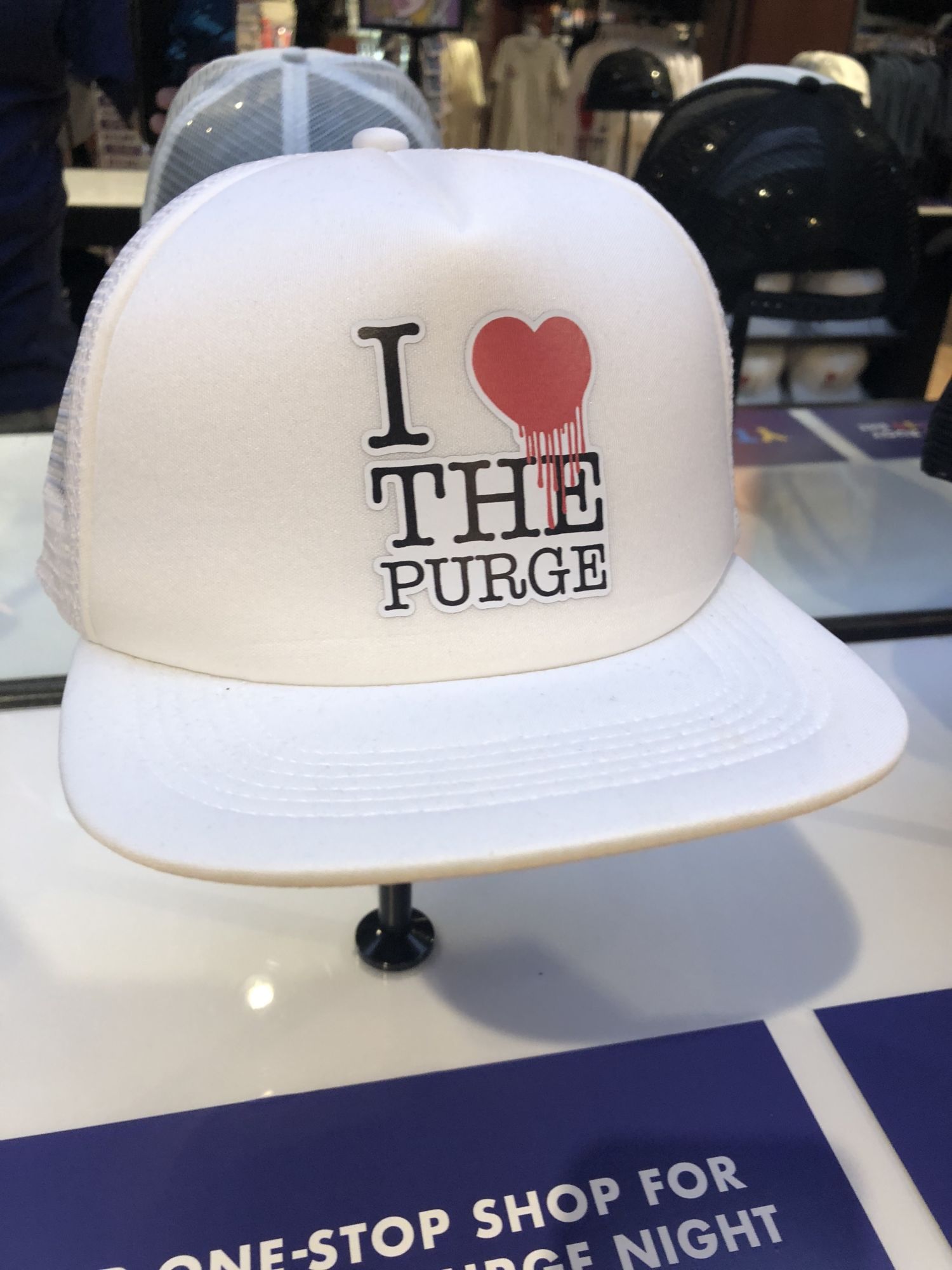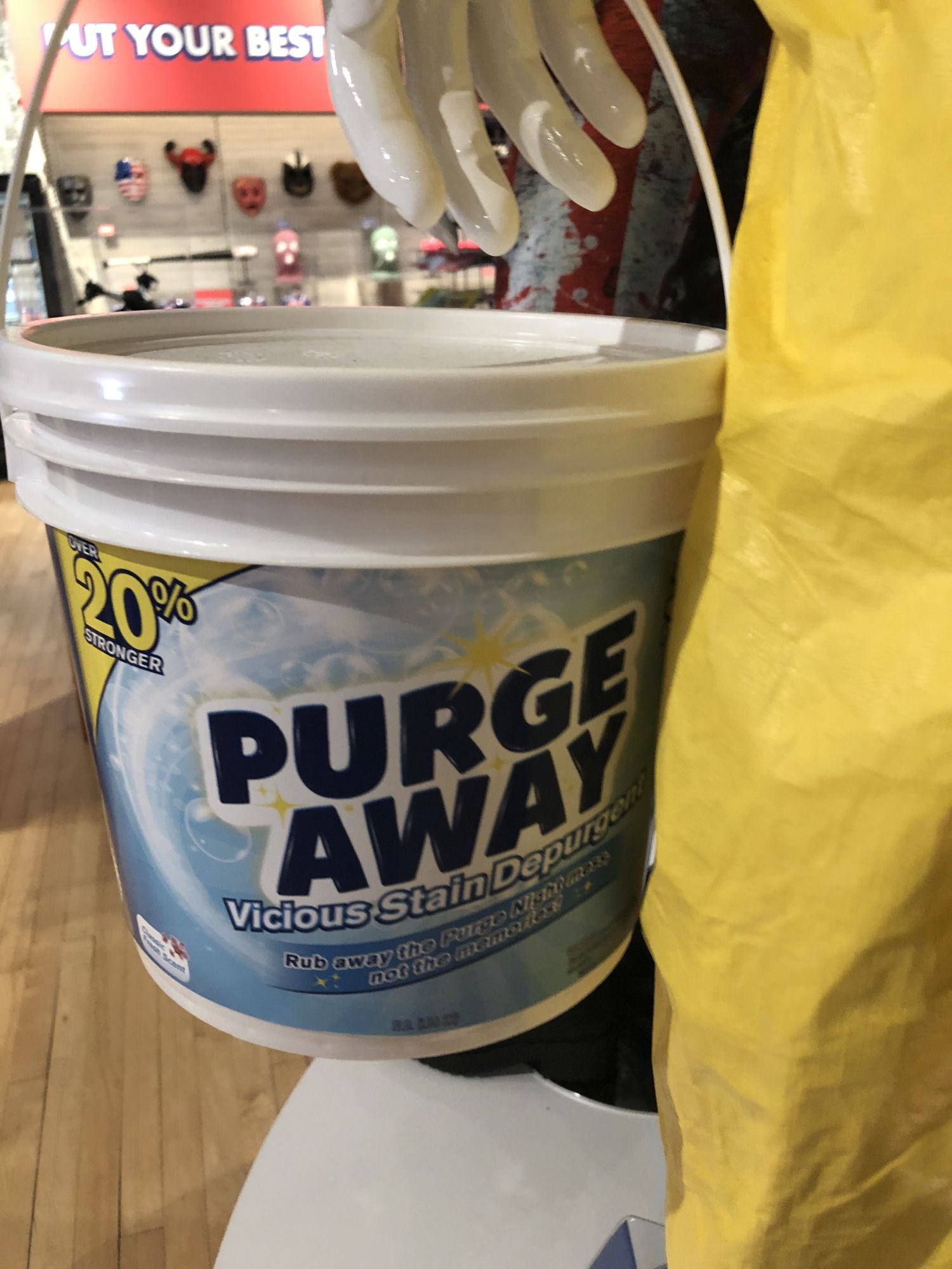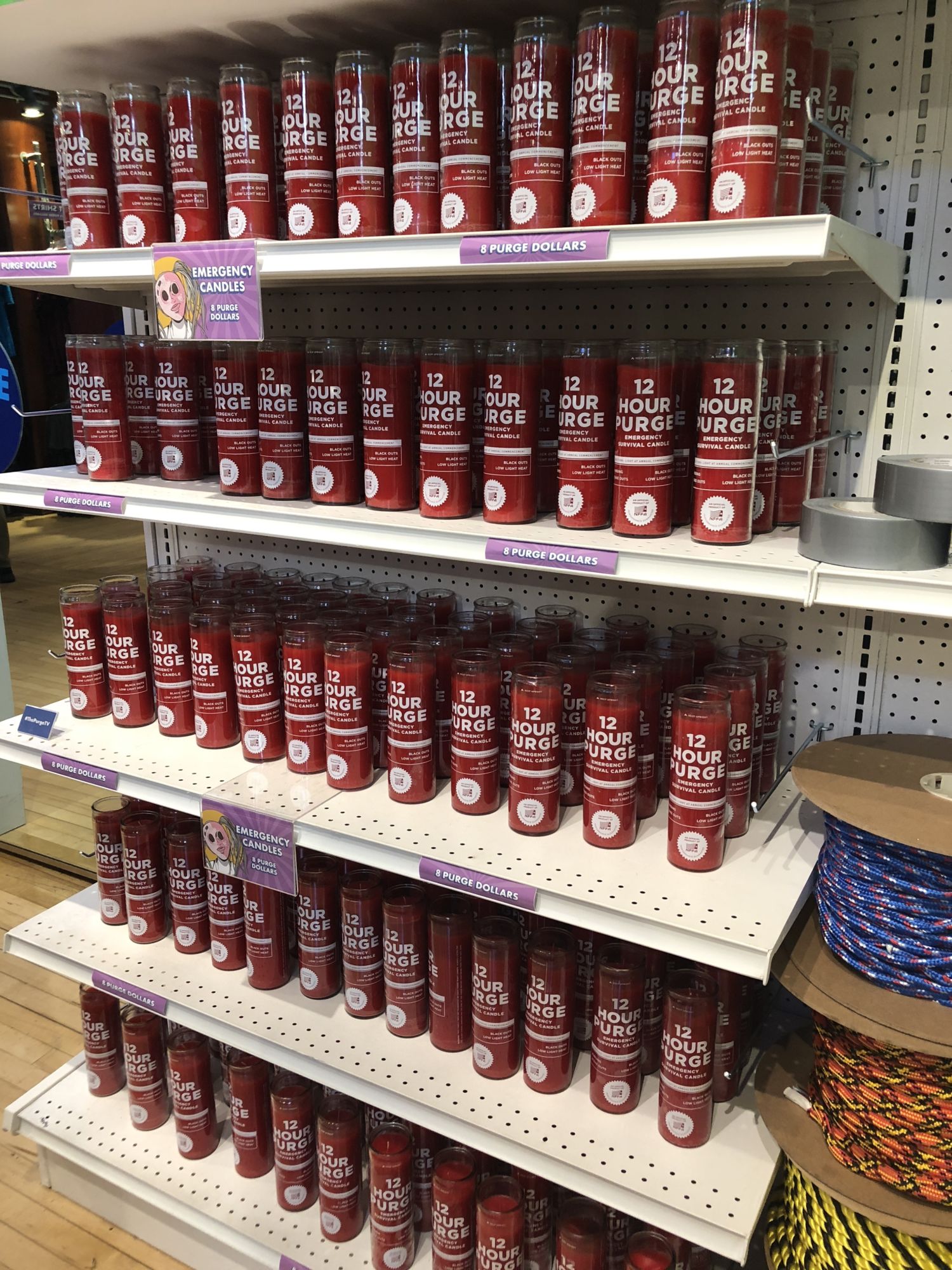 After being greeted by the friendly staff, you were handed 20 Purge dollars, good on anything in the store labeled for sale. And there was so much stuff! Shirts, hats, barb wire, greeting cards, energy drinks, buttons. My personal favorite was Purge Away. What is that you ask? Here is a video demonstration that will answer that very question!