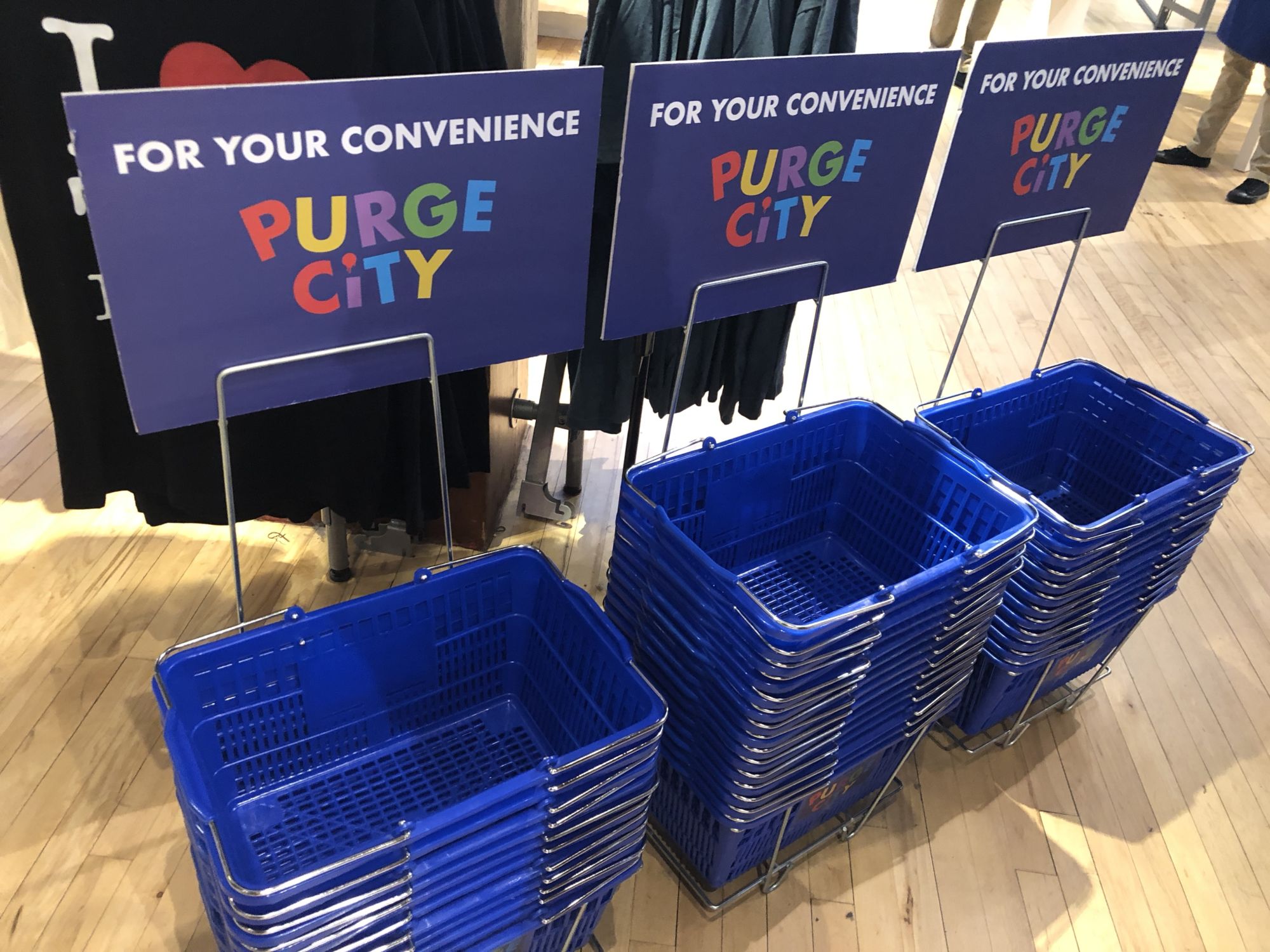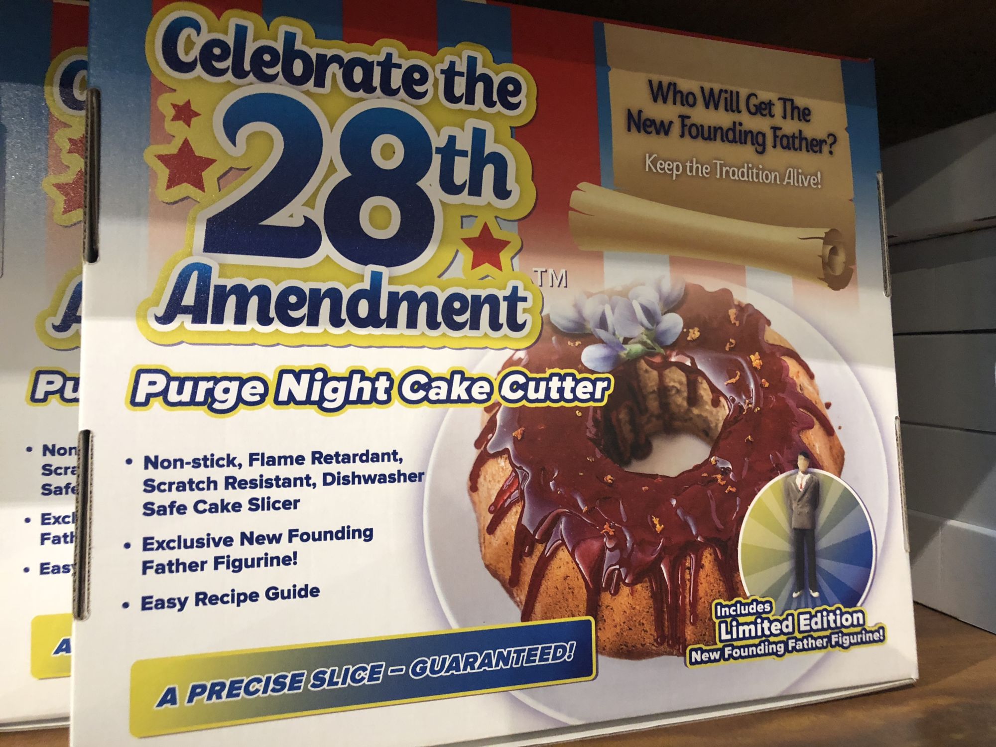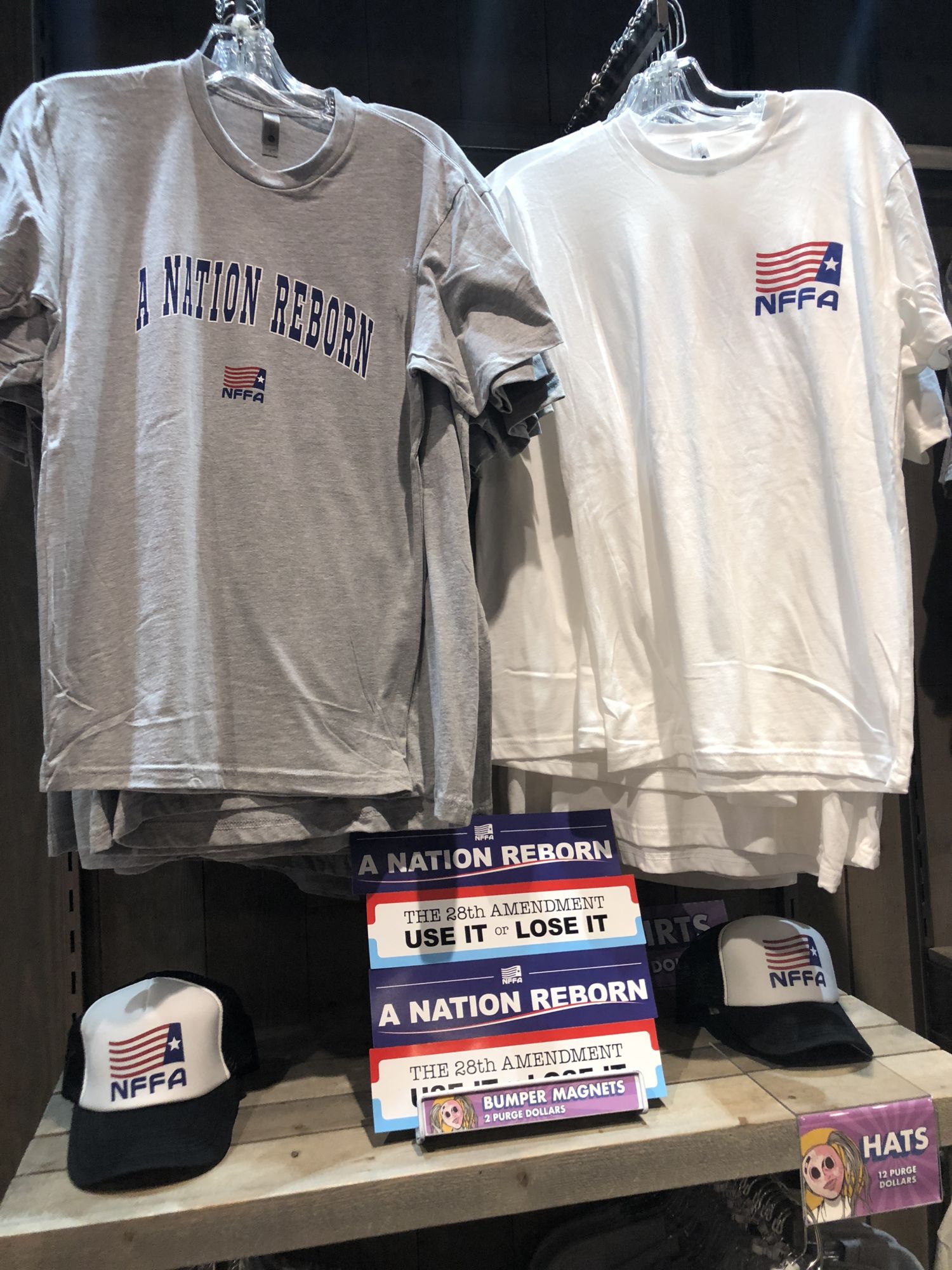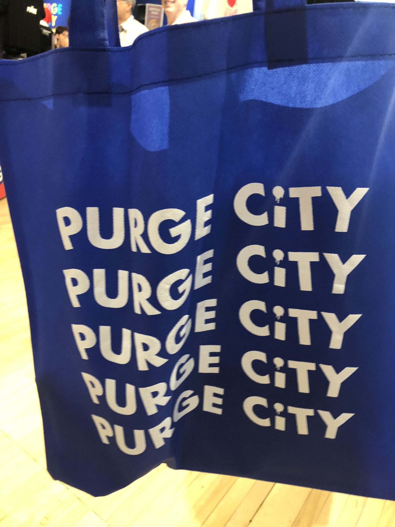 After being greeted by the friendly staff, you were handed 20 Purge dollars, good on anything in the store labeled for sale. And there was so much stuff! Shirts, hats, barb wire, greeting cards, energy drinks, buttons. My personal favorite was Purge Away. What is that you ask? Here is a video demonstration that will answer that very question!