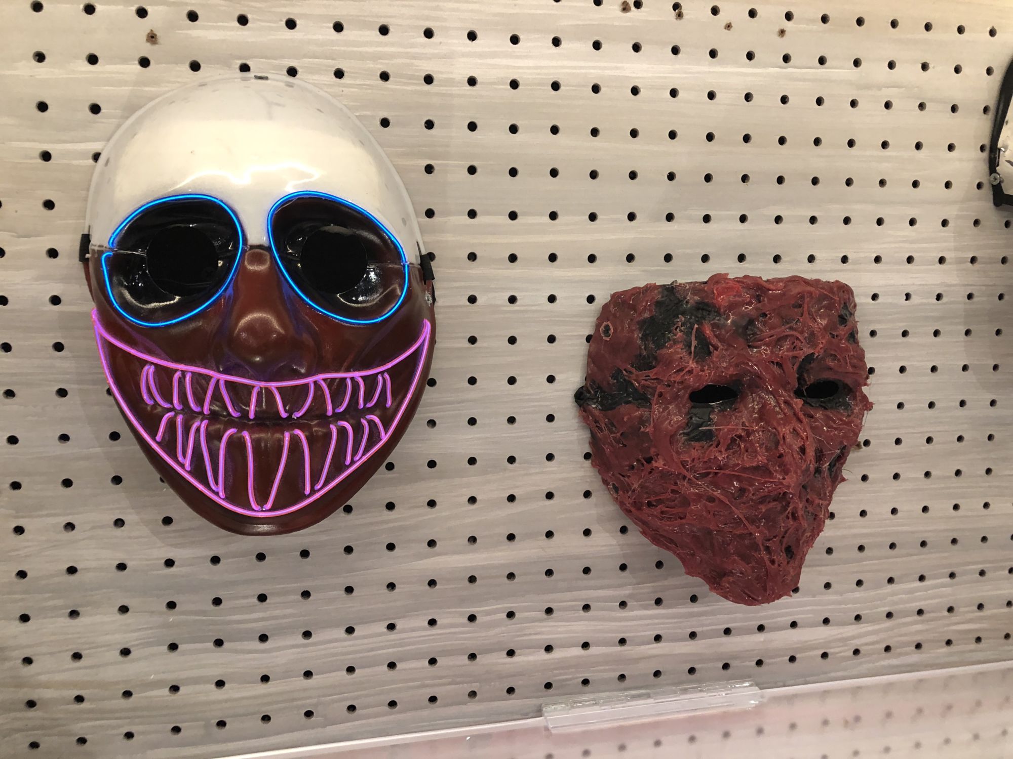 Seriously though, if they do this again you have to go, even if you are not a fan of the franchise. The dedication of the people running the store was incredible. It was so much fun walking around and talking about the holiday plans for the big night and all of the various products in the store with the employees. They kept the items available at pretty low prices so even if you took home a shirt you could still get a couple other small things. There was music you would hear in a grocery store playing, when there wasn't a demo happening. They also had costumes and mask props from the films on display to see as well. The masks are more detailed than I would have thought.