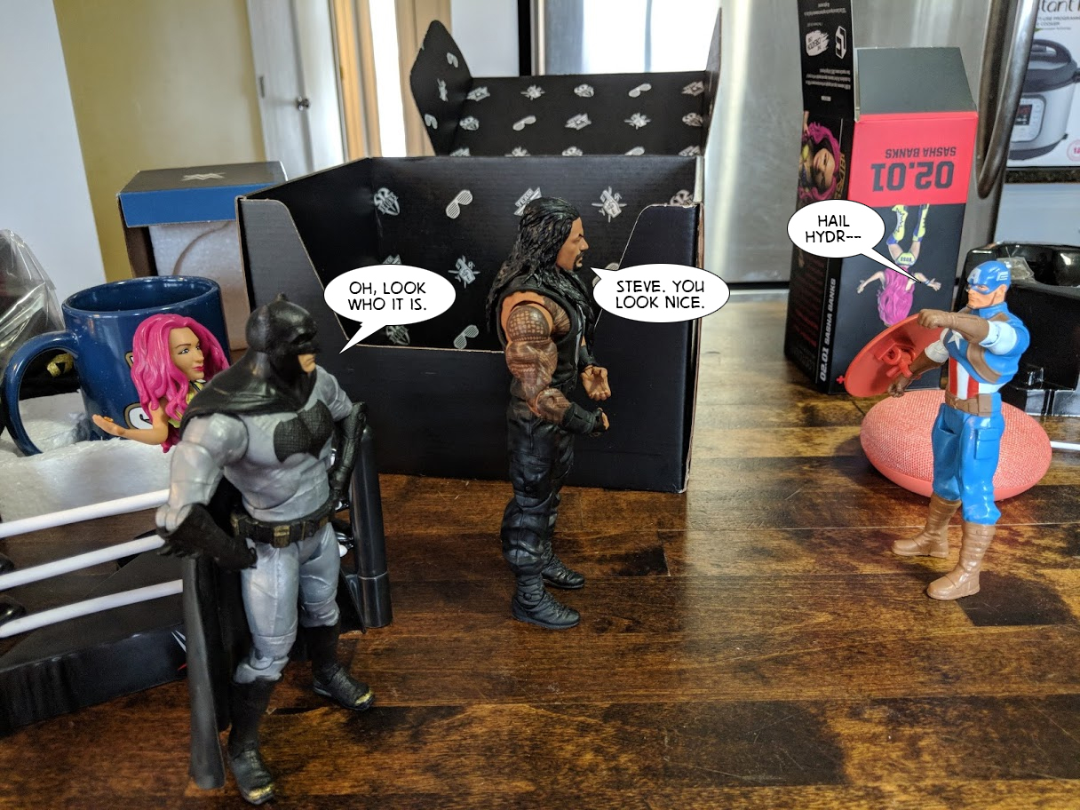 When we last checked in on our favorite roommates, Batman and Roman Reigns, Roman met a cute guy named Steve while unboxing a Comic Bento. After hitting off over their mutual enjoyment of Hellboy, Roman went off to learn more about Steve's Hydra friends.