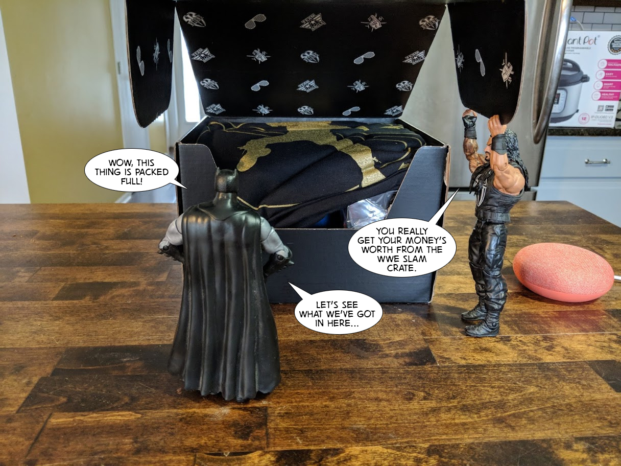 Batman and Roman Reigns Unbox January's WWE Slam Crate