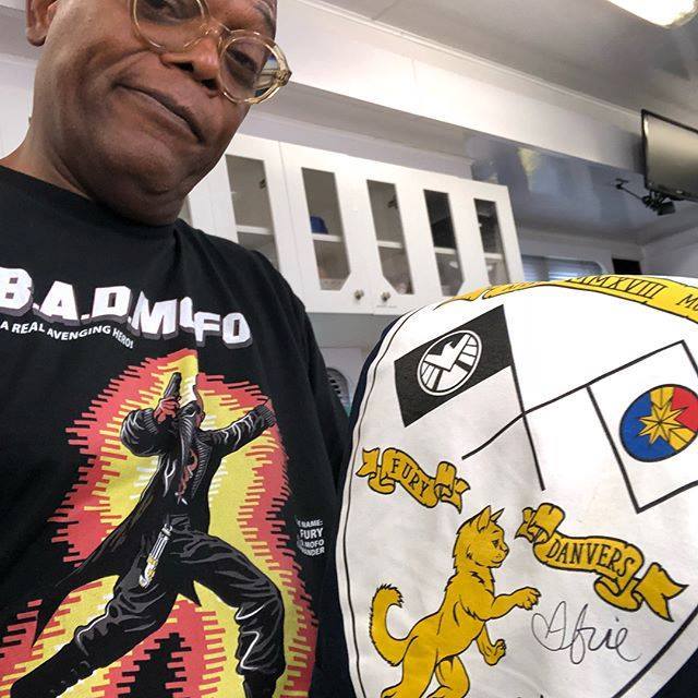 Samuel L. Jackson has been playing Nick Fury again, for the '90s-set Captain Marvel movie. And now that filming has wrapped, he is sharing Nick Fury's business cards with the internet by posting to Facebook: