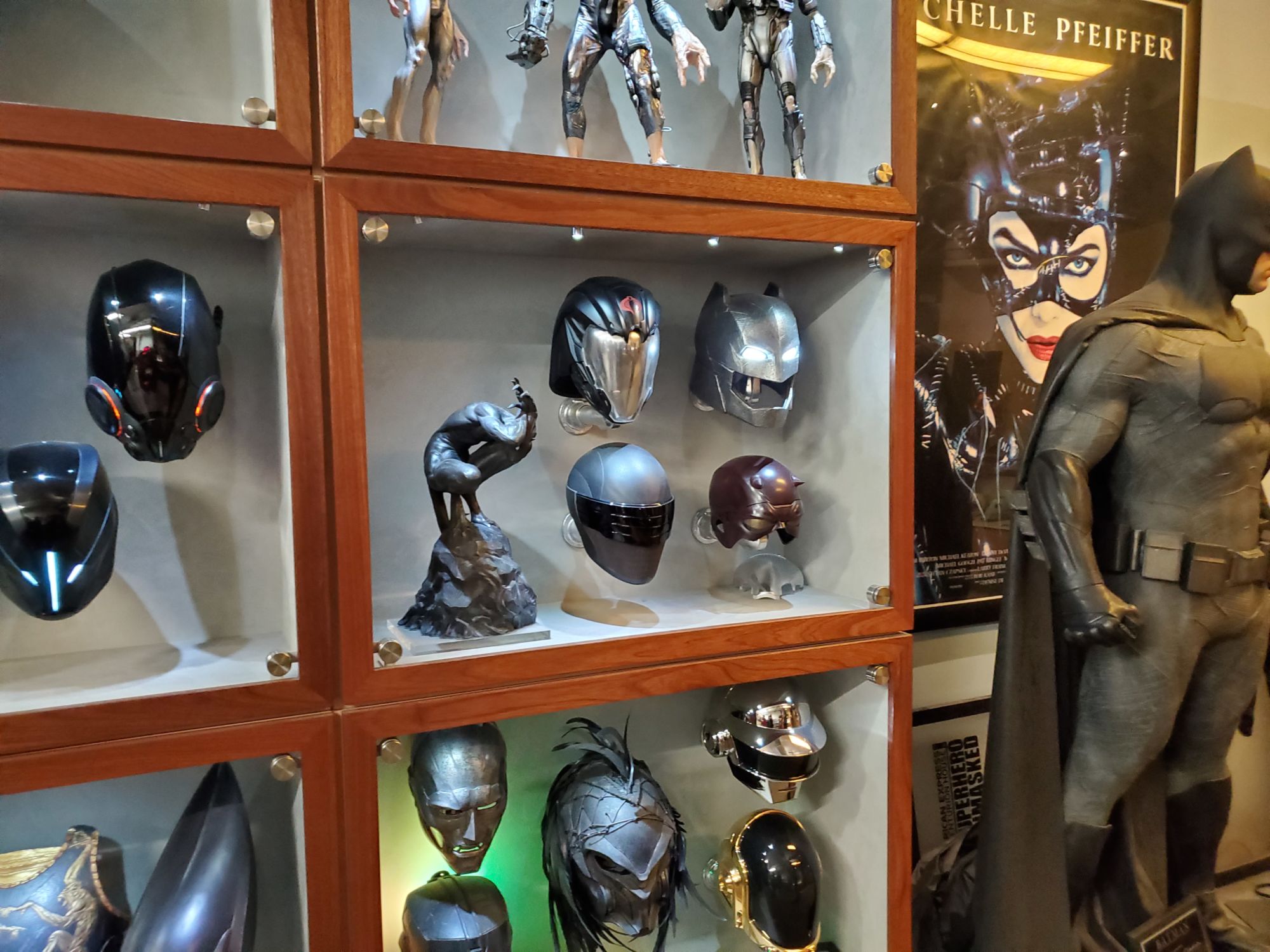 After our first stop on our lovely Spider-Man: Far From Home field trip it was time to jump back onto the bus, complete with a packed lunch that we got to eat while sitting in LA traffic, as we made our way over to Ironhead Studio. Ironhead is the studio that has worked on some of the most iconic superhero costumes dating back to the mid-'90s. While we could only take pictures and visuals in their front room, since they are actively working on costumes for announced and unannounced projects, we did get a brief presentation talking about the costume. We also got to see star J.B. Smoove and Martin Starr get digitally scanned so Ironhead could create a costume for them. Smoove and Starr also got the chance to try on some iconic helmets with Starr putting on one of the Loki helmets and Smoove channeling his inner Magneto.