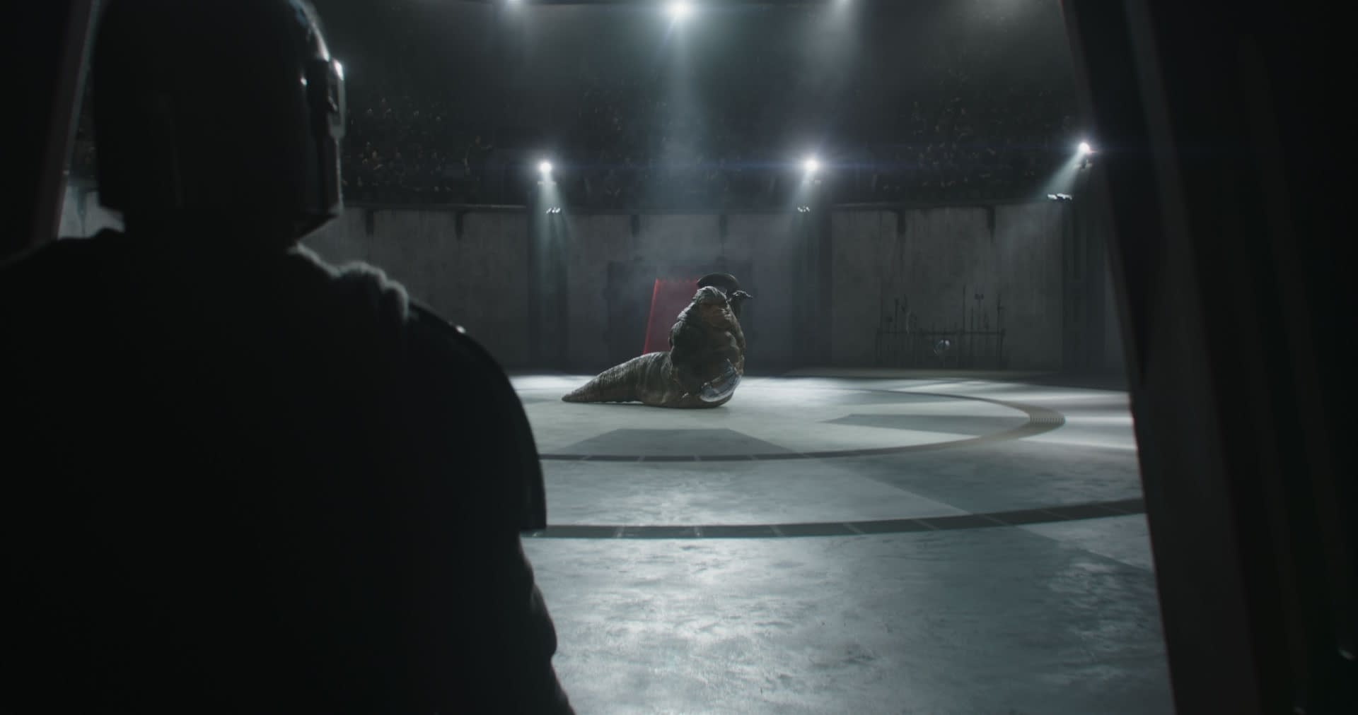 - The Mandalorian (Pedro Pascal) and Rotta the Hutt in Lucasfilm's THE MANDALORIAN AND GROGU. Photo courtesy of Lucasfilm. © 2026 Lucasfilm Ltd™. All Rights Reserved.