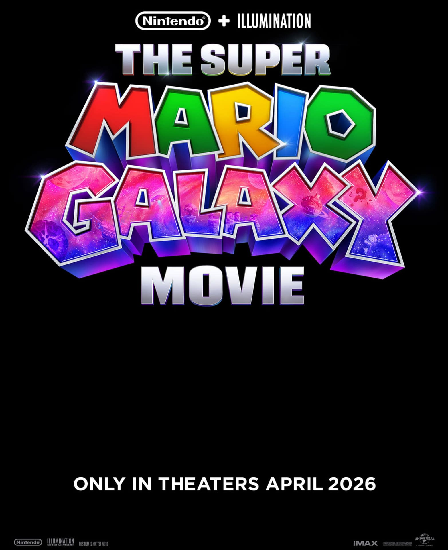 The Super Mario Galaxy Movie; only in theaters April 2026. The Super Mario Galaxy Movie is an animated film based on the world of Super Mario Bros., and follows The Super Mario Bros. Movie, which was released in 2023 and earned more than $1.3 billion worldwide. Both the 2023 film and The Super Mario Galaxy Movie are produced by Chris Meledandri of Illumination and Shigeru Miyamoto of Nintendo.