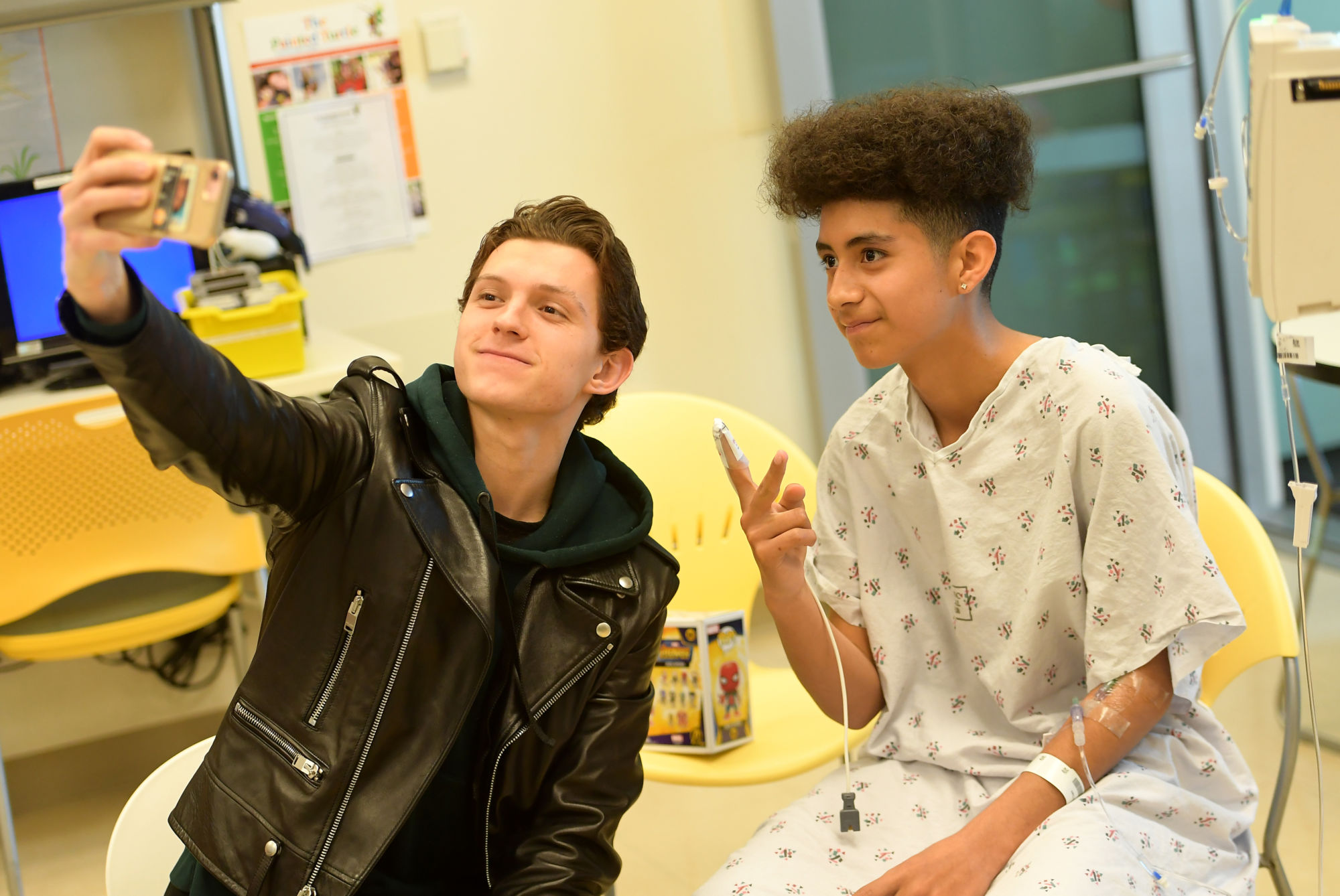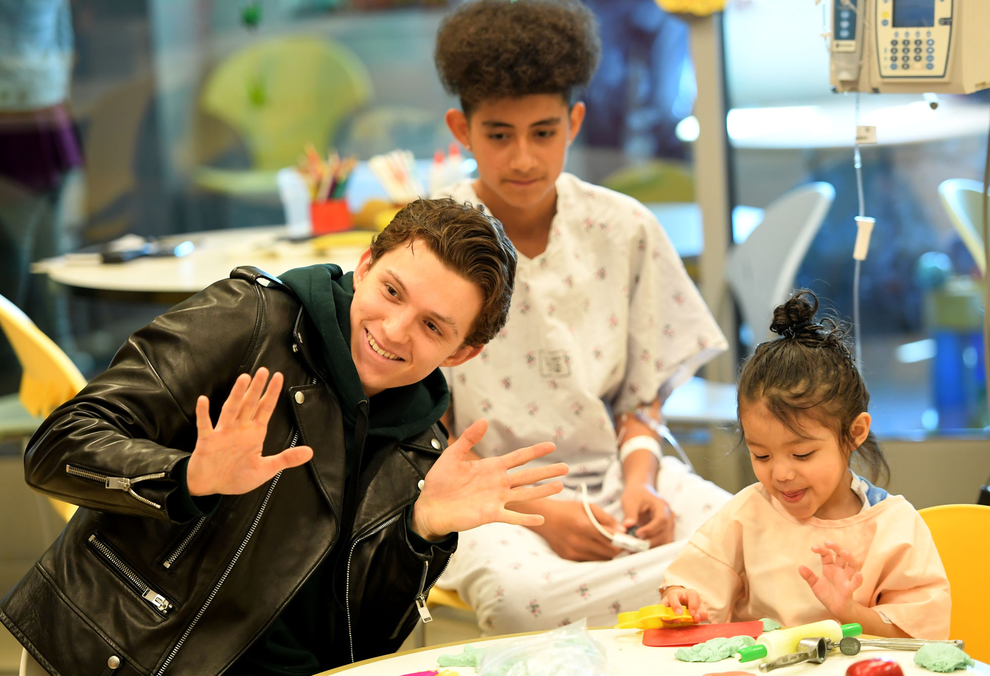 - LOS ANGELES, CA – MARCH 01: Tom Holland visits with children in support of Marvel's The Universe Unites at LAC+USC Medical Center on March 1, 2018 in Los Angeles, California. Holland borrowed the Amazon Treasure Truck to deliiver the first of a $1m toy donation from Funko to Starlight Children's Foundation (Photo by Matt Winkelmeyer/Getty Images for Disney)
