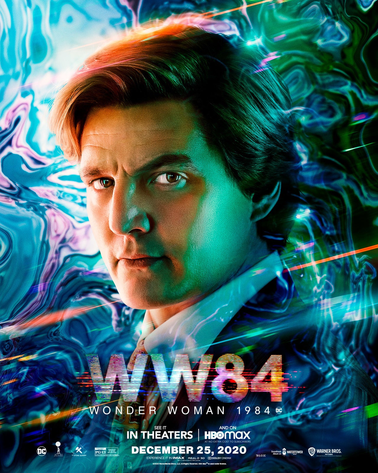 For something like the third time this year, Warner Bros. has kicked up the marketing push for Wonder Woman 1984. The movie is coming out this time because of the hybrid release model. Even though Warner Bros. appears to be heading toward some kind of open revolt for the decision to release all of its 2021 movies with this model, Wonder Woman 1984 will be the test case. A new round of promotional material means a new round of posters as well. We have four new character posters from IGN and another regular poster that was shared on the official Twitter account. All four of these movie posters continue to feature the neon colors we've seen from this movie's marketing since day one.