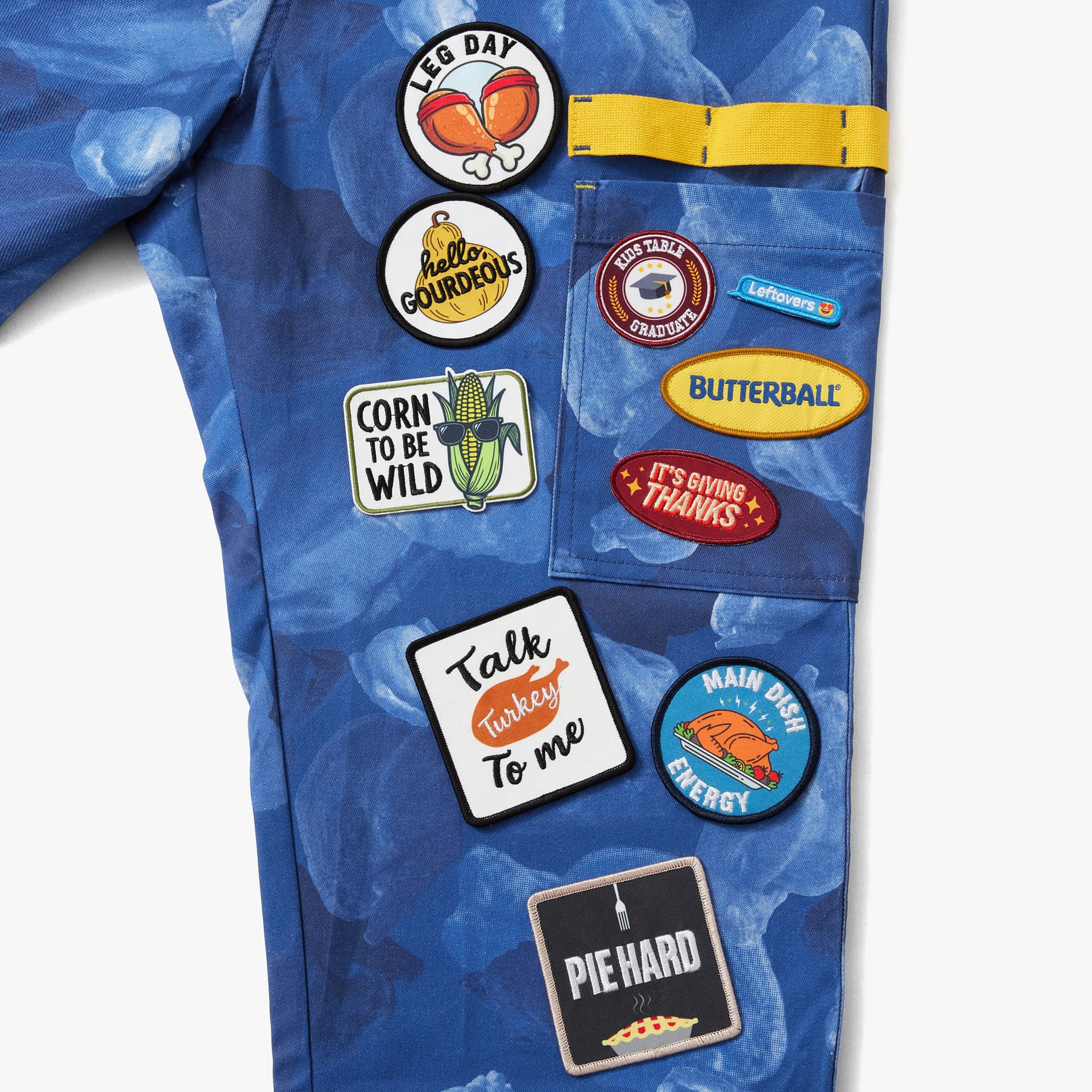 According to the Butterball Togetherness Report: 2025 Thanksgiving Outlook, nearly a quarter of all holiday hosts feel that cooking a turkey is intimidating, including 37% of Millennial hosts. Additionally, 24% want everything to be perfect, and 18% try to have fun, but get caught up in holiday hosting tasks. Most alarming, 5% would rather stand in line at the DMV for their REAL IDs than host Thanksgiving this year! However, 68% of hosts agreed that wearing the right clothes helps them feel ready, capable and comfortable for the task at hand. Designed in brilliant Butterball blue and featuring a clever turkey-inspired print, these pants are not only stylish; they also ensure your hosting essentials are always within reach. Key features include: