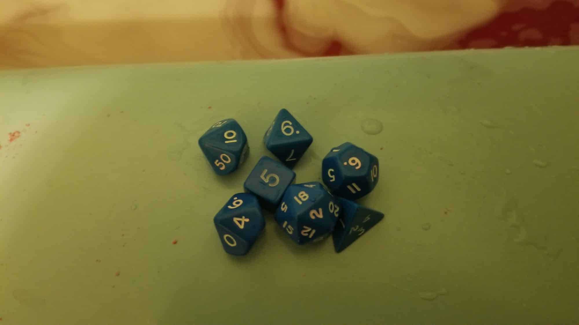 The first one we have is a giant D20 bath bomb. This bomb was much bigger than any of the other bath bombs that GeekyClean sent me, so I was expecting to take a long time to dissolve. It didn't take that long, but it did dissolve at a nice rate. This one is Cherry Lime and was probably the strongest of the six bombs. It was almost too strong, to the point where I had to crack a window open. There is also a little surprise that fell to the bottom of my tub which is a full set of D&D dice. As someone who didn't actually own a full set, this was quite exciting. This wasn't a multi-color bomb and turned my tub bright pink. There didn't appear to be any residue left behind.