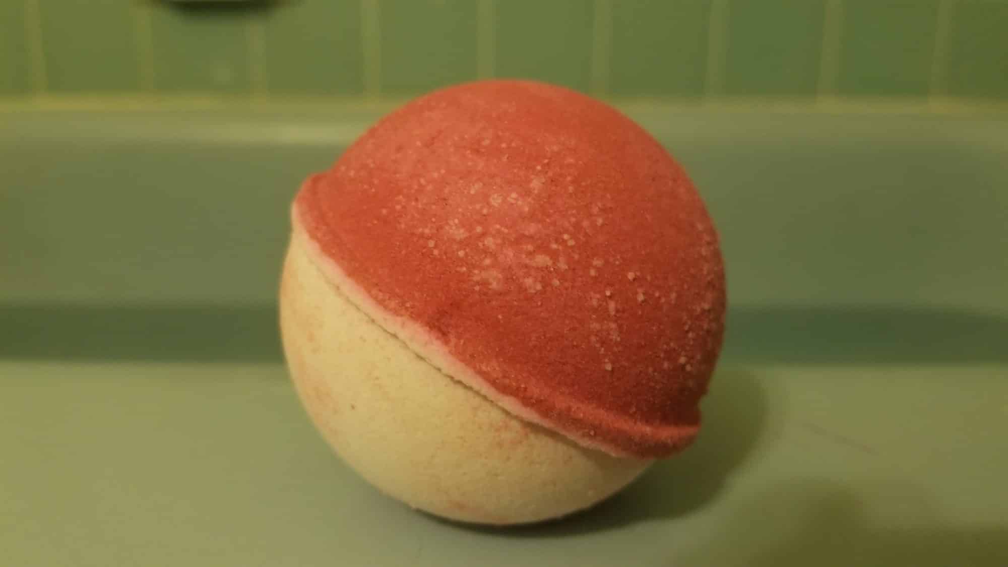 Next, it's time to catch them all with a pokemon themed bath bomb. This is a normal sized bath bomb that smells very tropical. This time the smell wasn't too overwhelming though the GeekyClean bombs in general tend to be stronger than other products I've used. This was a simple little dissolve that was white and red which turned the water of my tub to pale pink. Out of all of the bombs that GeekyClean sent this is one I could see myself using again. Plus I'm one step closer to catching them all with a new little toy that came out of this bath bomb. This would also be a fun one for kids since it really does look like a Pokeball before you drop it in the water.