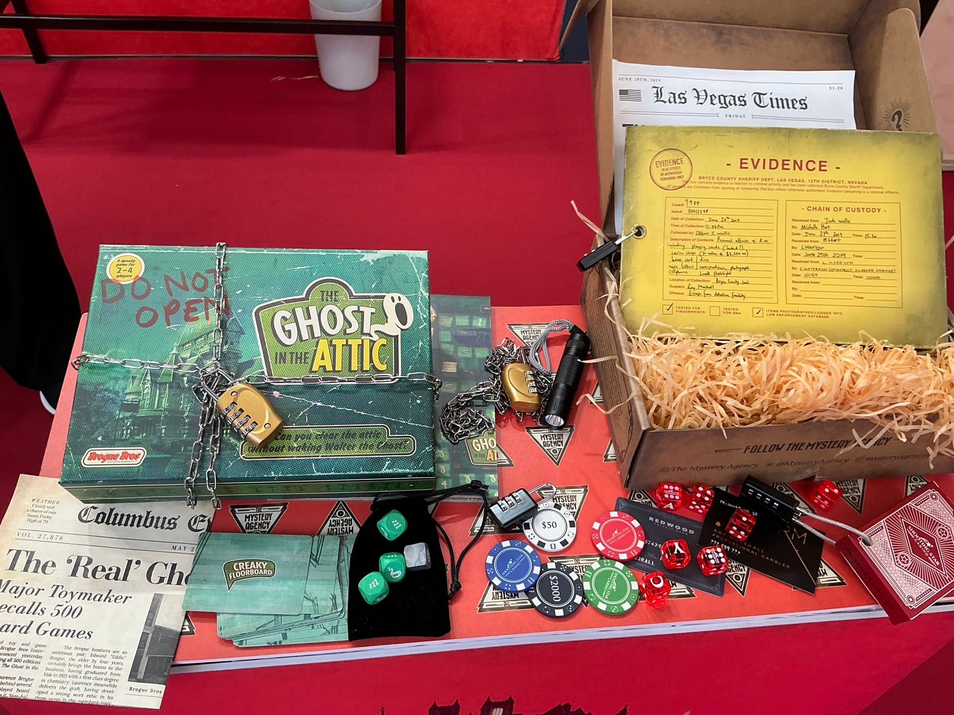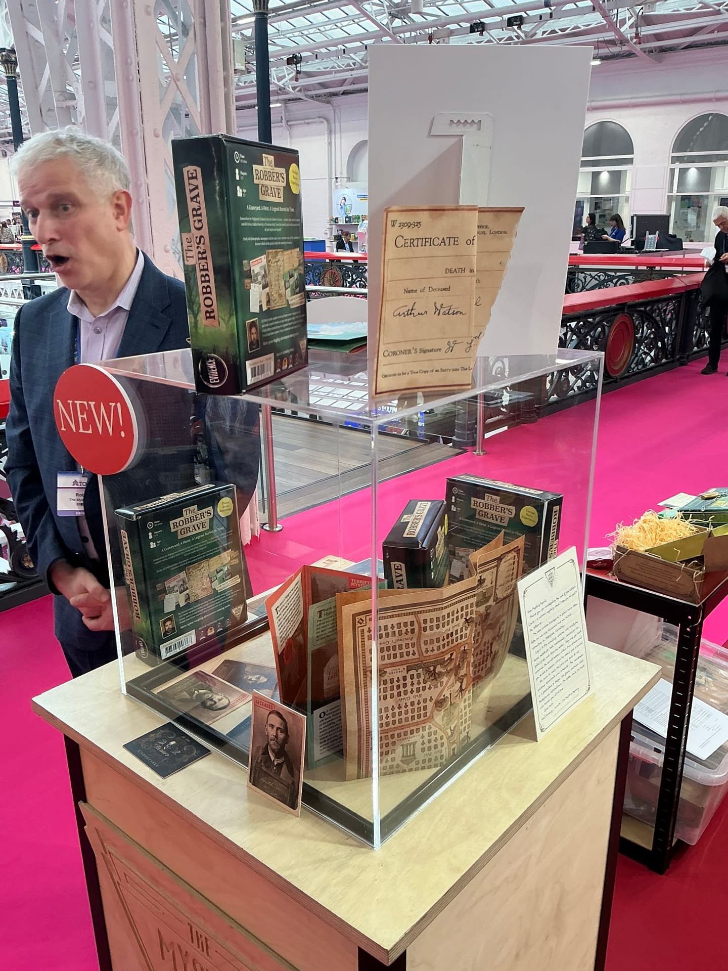 The productions of The Mischief Theatre may be one of my very favourite things about living and working in London. The Play That Goes Wrong, Comedy About A Bank Robbery, Groan Ups, Mischief Movie Night and many more play out all the time. I saw Christmas Carol Goes Wrong a couple of weeks ago, and it was an utter triumph. One of my favourite moments of my lfe was sitting, writing Bleeding Cool in the basement of the Blacks club of Dean Street, Soho, as Mischief founders Henry Lewis, Jonathan Sayer, and Henry Shields descended with massive overflowing books of notes and over the next four hours proceeded to rewrite Peter Pan Goes Wrong for its Broadway revival, writing new jokes on the spot like Paul McCartney carved Get Back out of a wall of sound. But the cast and crew have many other solo spinoff projects and today, at Toy Fair, Henry Lewis was unveiling his latest. The Robber's Grave, a new escape room murder mystery in a box from The Mystery Agency, the latest in a number of such projects he has created for them, and being published this spring. And he gave Bleeding Cool a little tour... here on YouTube and also TikTok.