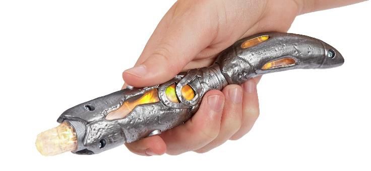 The US and UK toy versions of the Sonic Screwdriver have been created by Seven20 and Character Options, respectively. The new, electronic 8" collectible is a replica of the Doctor's device, features a light crystal and has two buttons which control the light and sound elements of the Sonic.