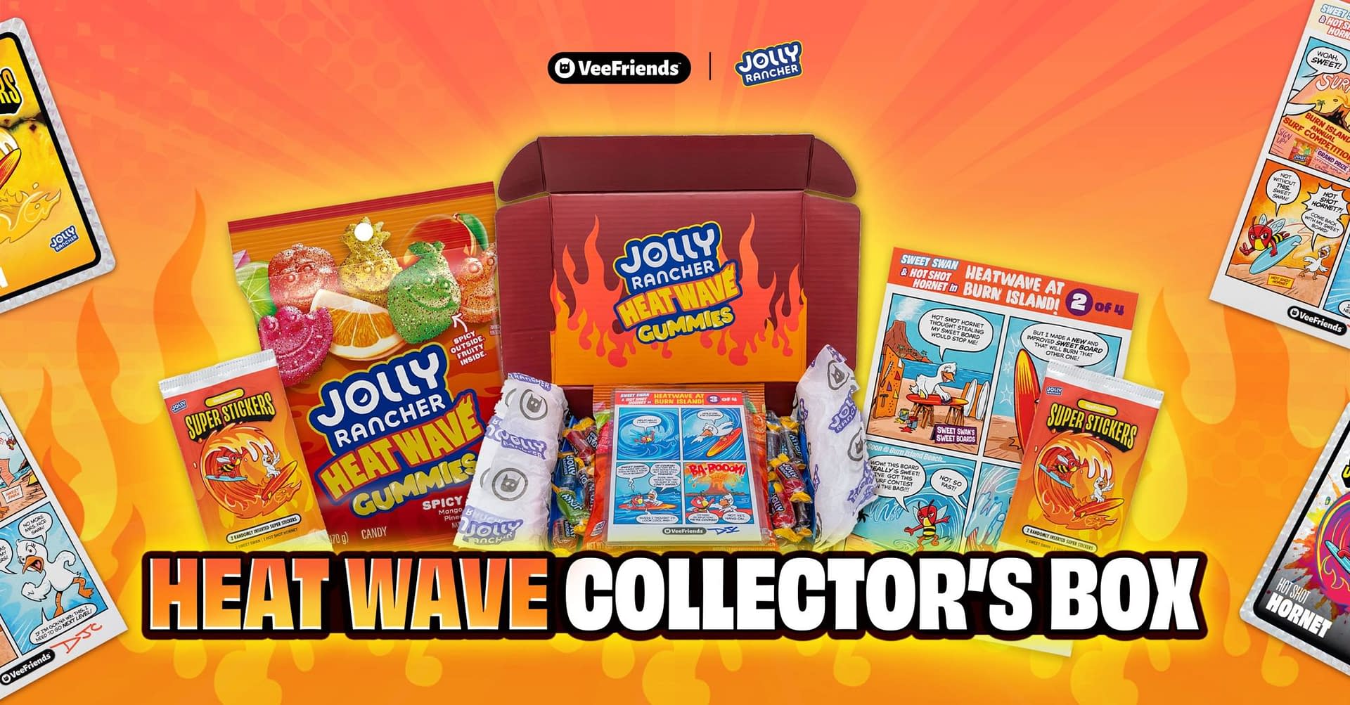 - Collector's box includes Heat Wave Gummies, classic candies, stickers, and signed comic cards.