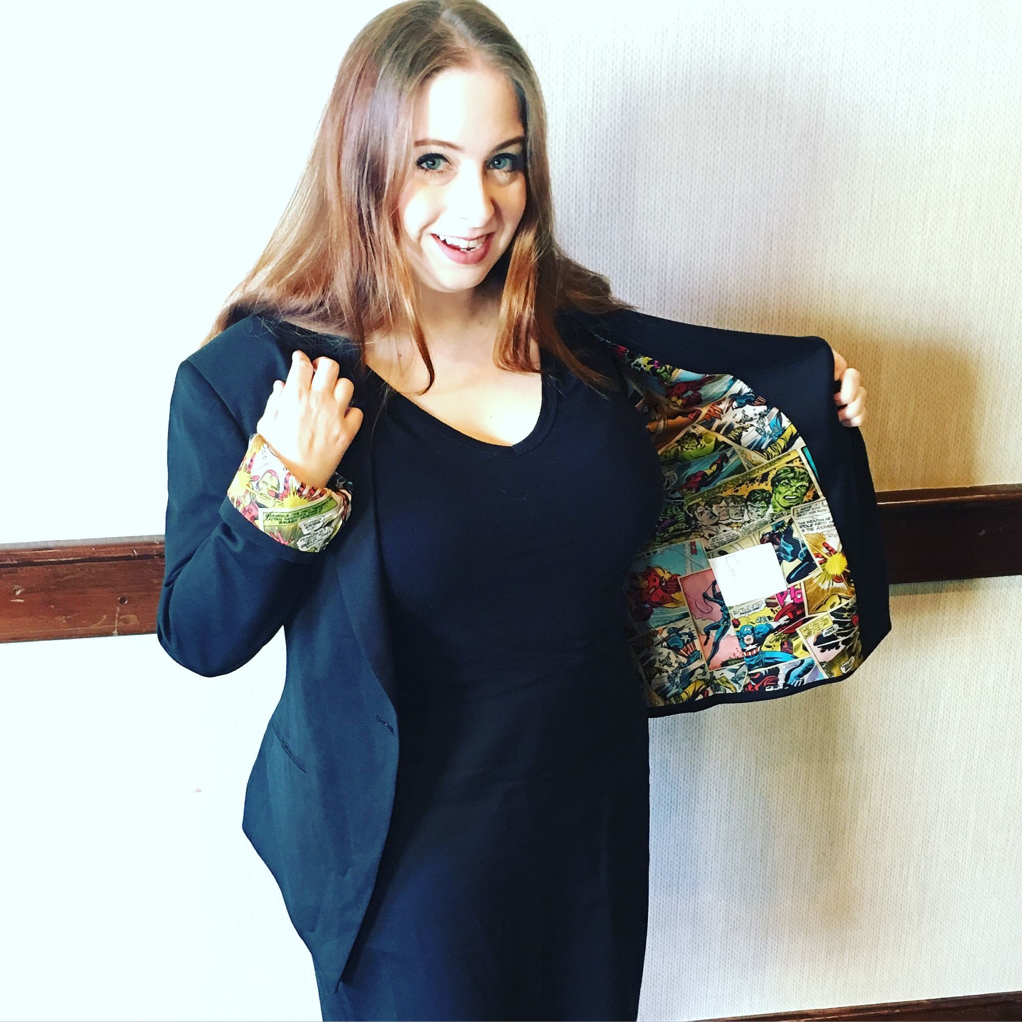 FUN hooked me up with a blazer, pencil skirt, and pants! I wore the skirt and blazer for work today, and let me tell you: the items fit like a glove. Even the pants fit perfect — plus, the items are all lined with panels from silver/bronze age Marvel comics. How cool is that!? I looked professional while showing off my nerd pride. The clothing is also extremely well made. These are absolutely worth buying. Find the Marvel set here and the DC set here!