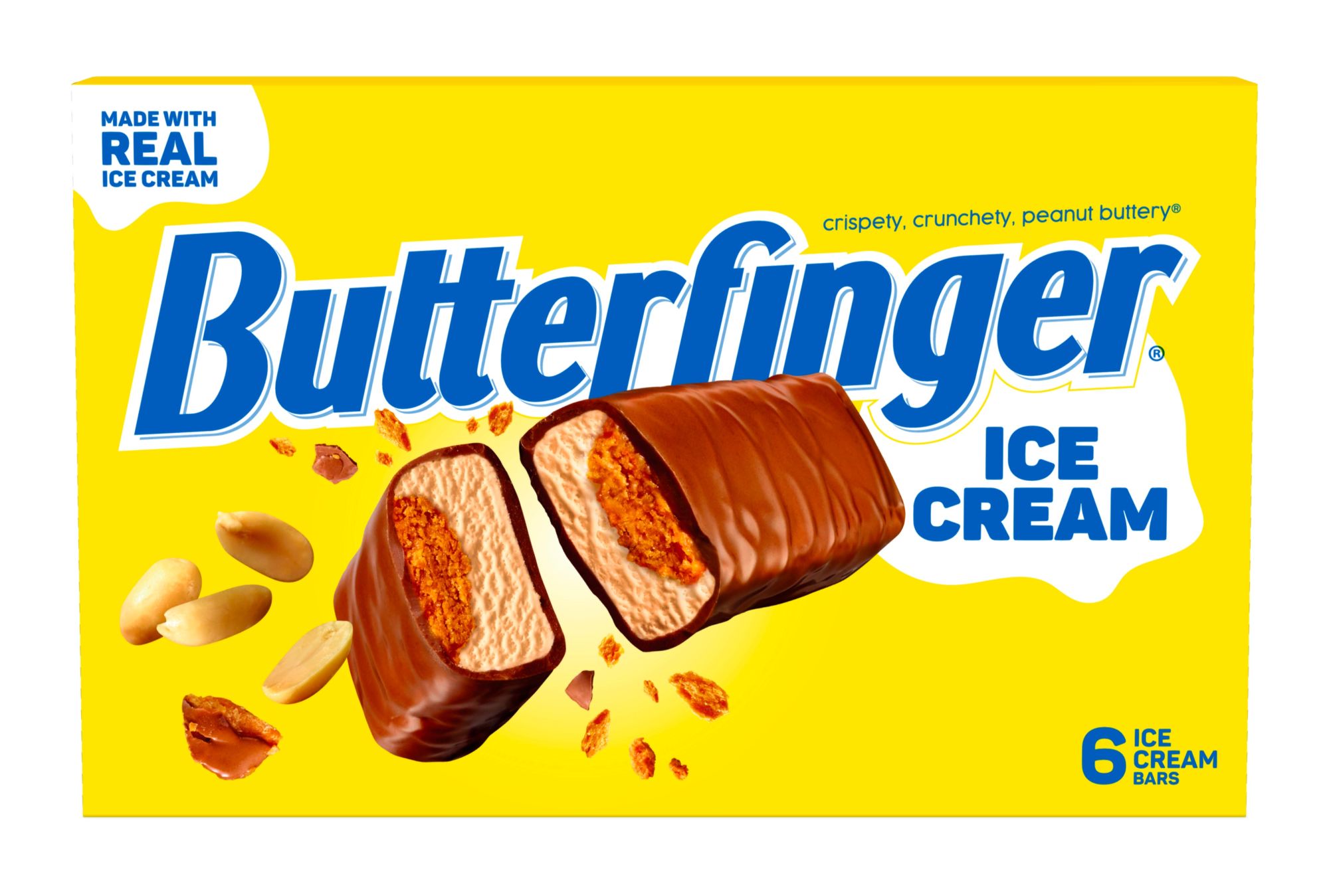 - Butterfinger Ice Cream Candy Bar features rich Butterfinger-flavored ice cream layered with the brand's iconic crispy peanut-butter crunch and blanketed in a smooth chocolatey coating. The crispety, crunchety peanut-buttery one-of-a-kind experience hits immediately, and doesn't quit.