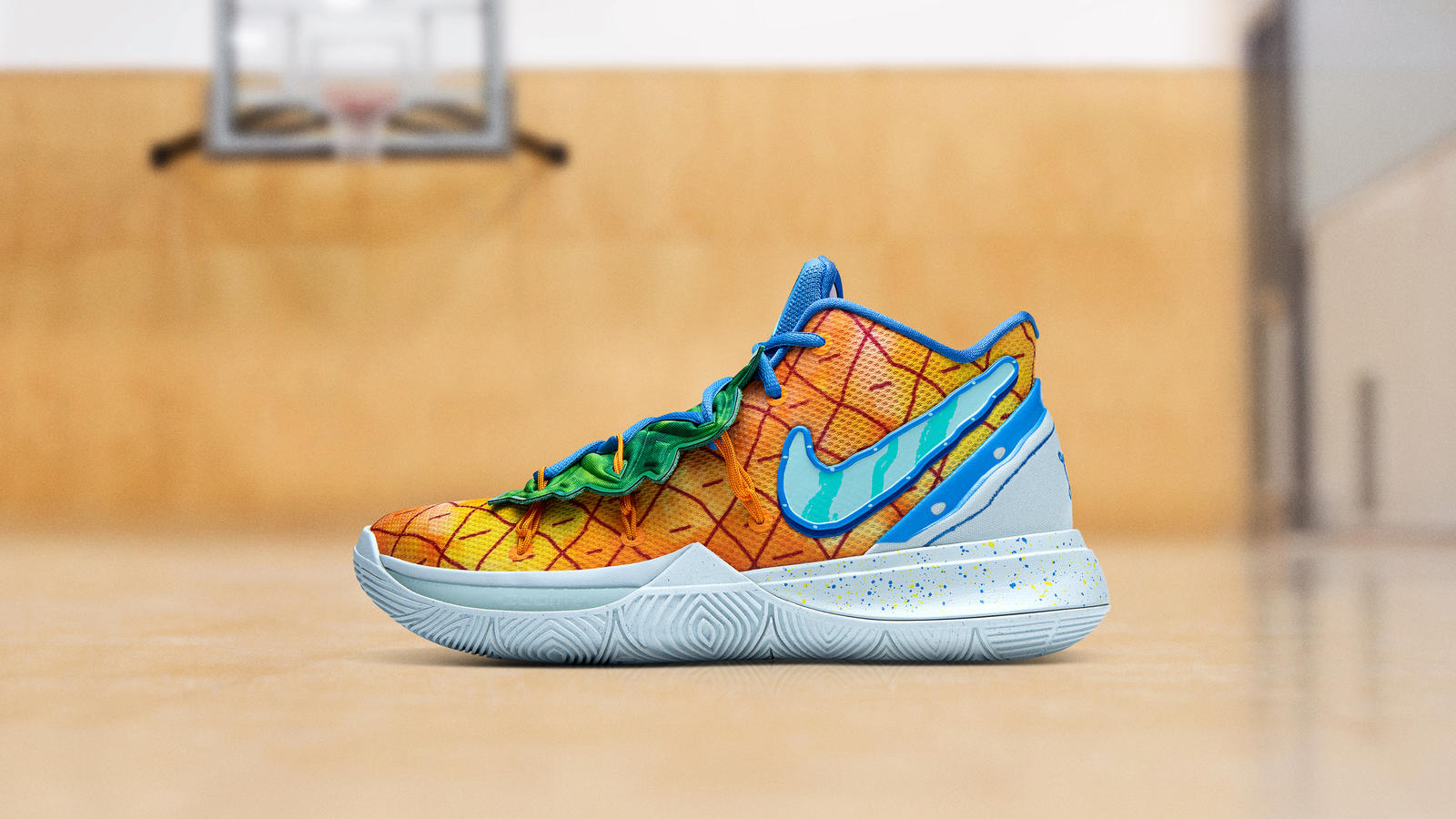 There's no mistaking whose home this honors in the next installment of the KYRIE 5 x SpongeBob SquarePants series with its pineapple peel-inspired upper and a flytrap resembling the fruit's leaf. It releases October 24.