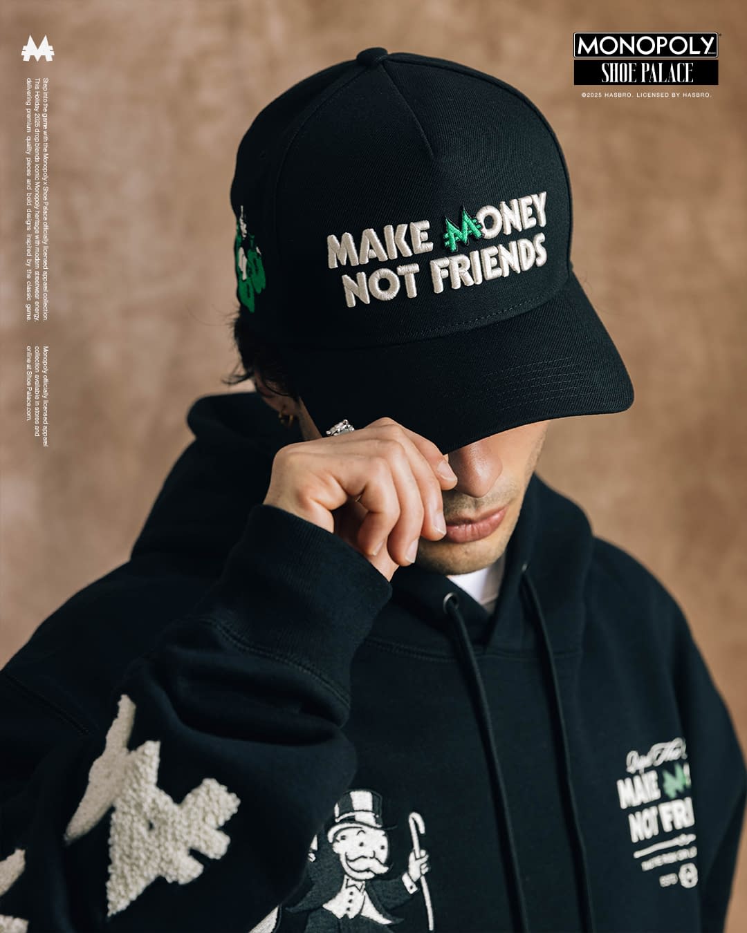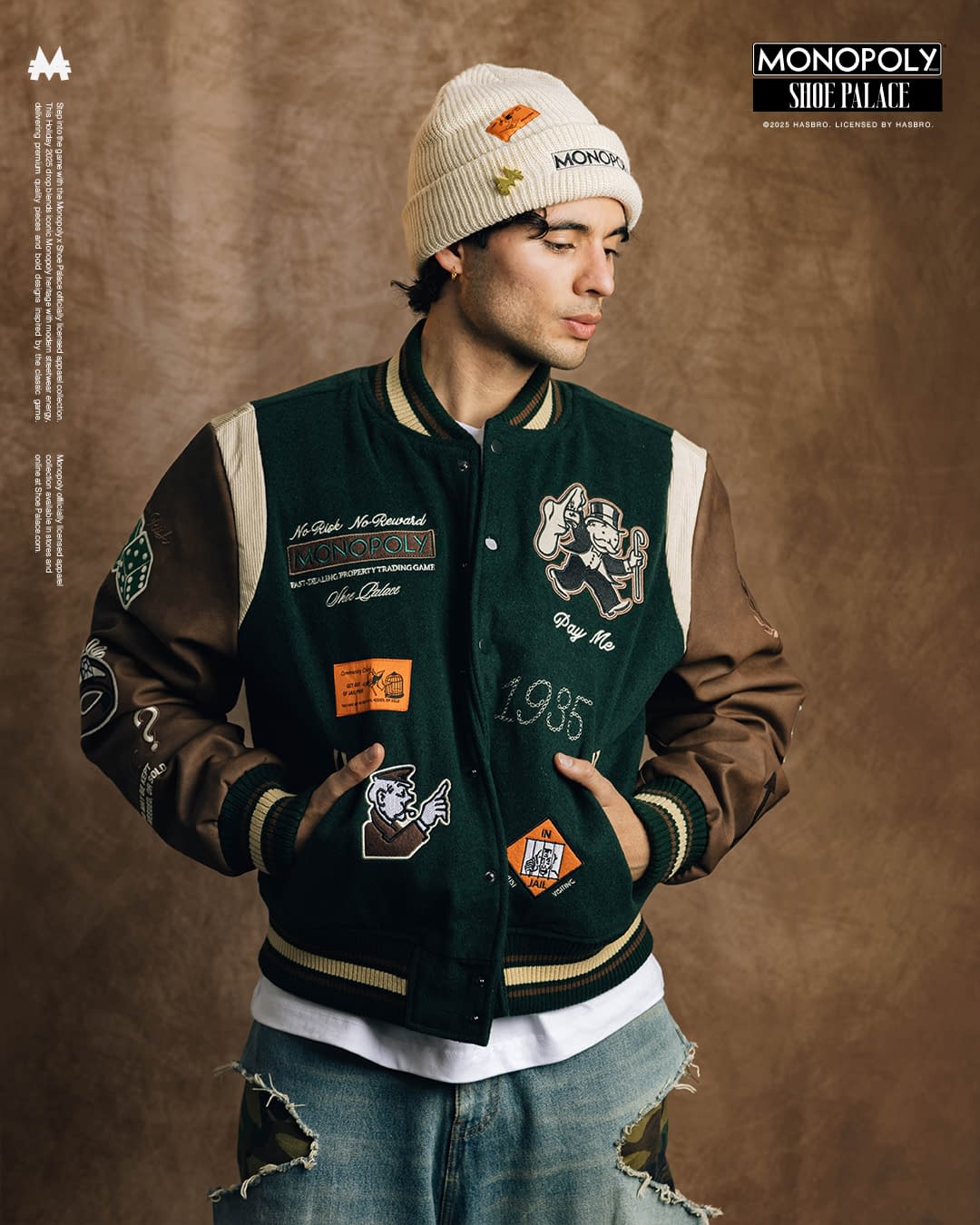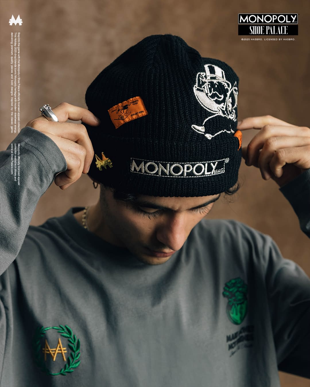 Under license from Hasbro, a leading games, IP and toy company, the line features artwork and verbiage from the iconic board game. Mr. Monopoly, the brand's mascot, is present on multiple pieces of the collection. The collection includes sun-washed fleece, a jersey with satin trim and embroidered details. There are hats and beanies that include Chance Cards and classic artwork. Shoe Palace was built on family, and few things in history have brought more families together than Monopoly. This launch builds on Hasbro and Shoe Palace's existing work, with two previous Monopoly collections. Both collections were highly successful. The only thing better than getting out of jail free is picking up the brand-new Shoe Palace x Monopoly collection.