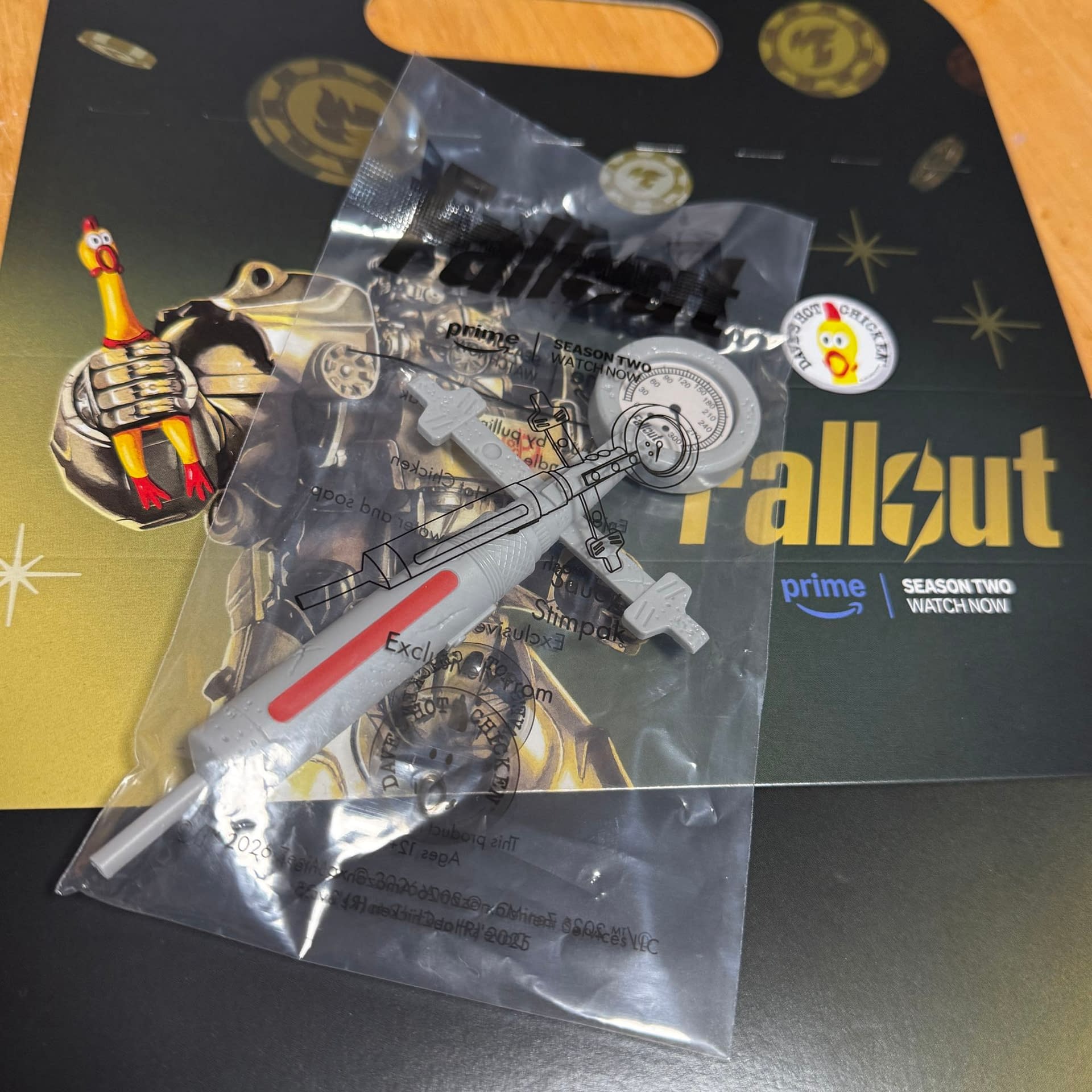 - Fallout-themed packaging and collectible Stimpak toys are available at 400 Dave’s Hot Chicken locations.