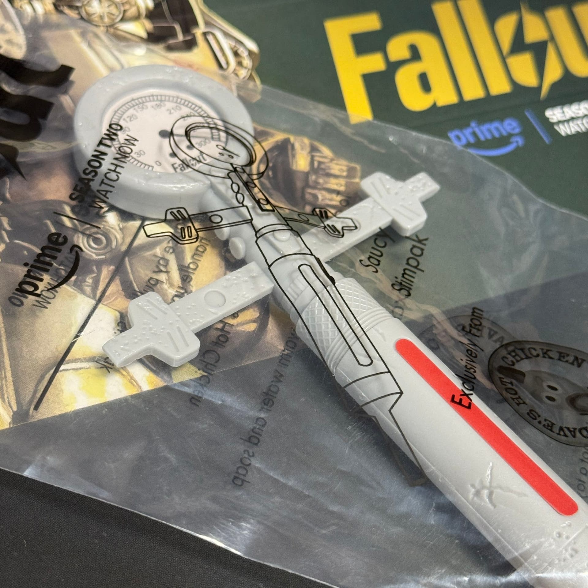Saucy Survival Kit, which comes in Fallout‑branded packaging and includes classic Dave's menu items—either a 10‑piece order of Saucy Bites or a single chicken slider, paired with crispy fries and ranch dressing. What sets the Survival Kit apart is the inclusion of a collectible Fallout Stimpak toy. Designed to resemble the iconic healing item from the Fallout universe, the Stimpak isn't just decorative: fans can use it as a novelty sauce dispenser, injecting ranch or other dips straight onto their food for a more immersive experience. Fallout has been a hit video game for years, so while it is not a conventional fast-food toy, seeing a Stimpak in real life is pretty impressive, and hopefully, it does not stop here.