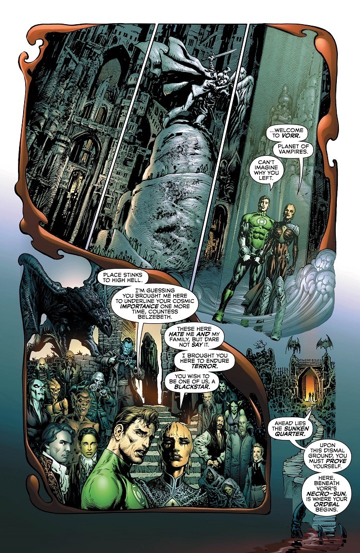 Basically, a bit like the Green Lantern police-spinoff/rival legion, the Darkstars. But more undead. And in tomorrow's The Green Lantern #4 we have a vampire planet to test Hal Jordan's resolve. But who is testing whom? And are there some familiar faces?