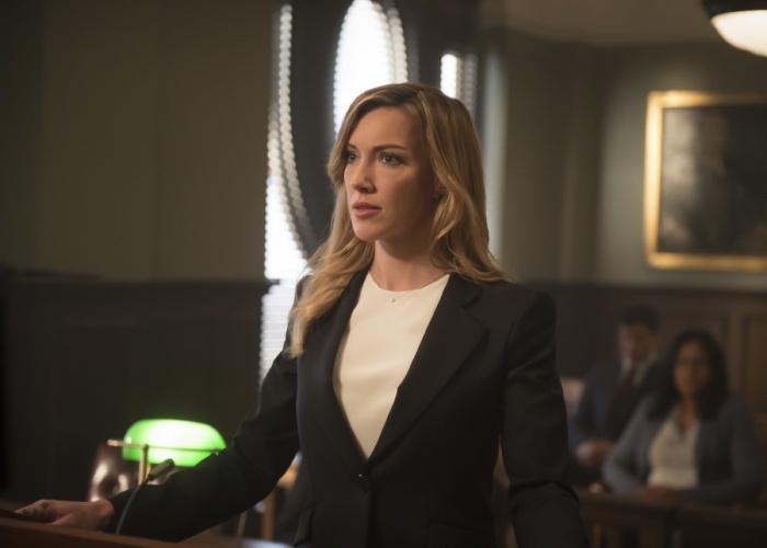 Ollie (Stephen Amell) is still in prison, and from these photos, we can probably safely assume Laurel Lance (Katie Cassidy) is going full-on District Attorney, using the law to the team's advantage.