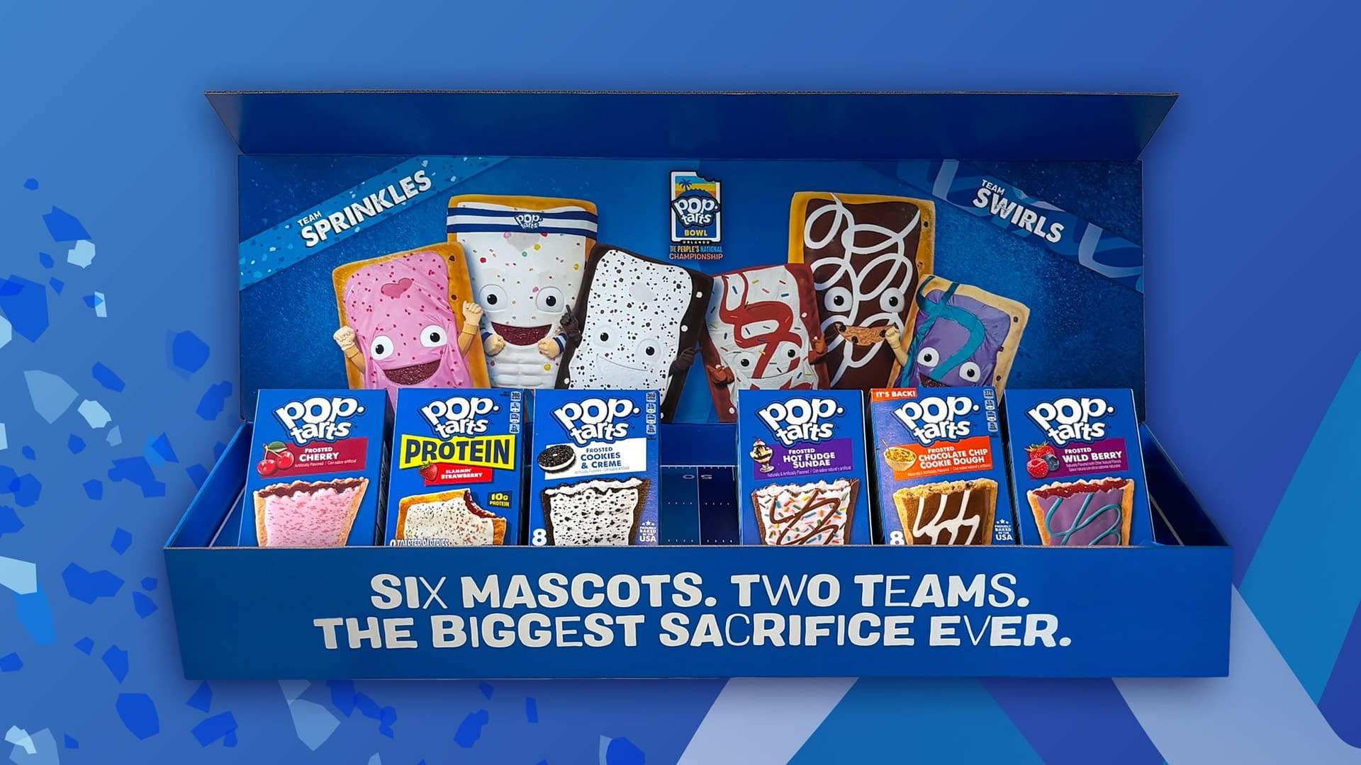 - Bring the showdown home with a Pop-Tarts Limited-Edition Team Sprinkles vs Team Swirls Tailgate Pack. From tailgates to watch parties, this limited-edition collector's box is the perfect addition to game day spreads and features full-sized boxes of all six toaster pastry flavors that will be Edible Mascots at this year's game (Protein Slammin' Strawberry, Frosted Cherry, Frosted Cookies & Crème, Frosted Chocolate Chip Cookie Dough, Frosted Wild Berry, and Frosted Hot Fudge Sundae).