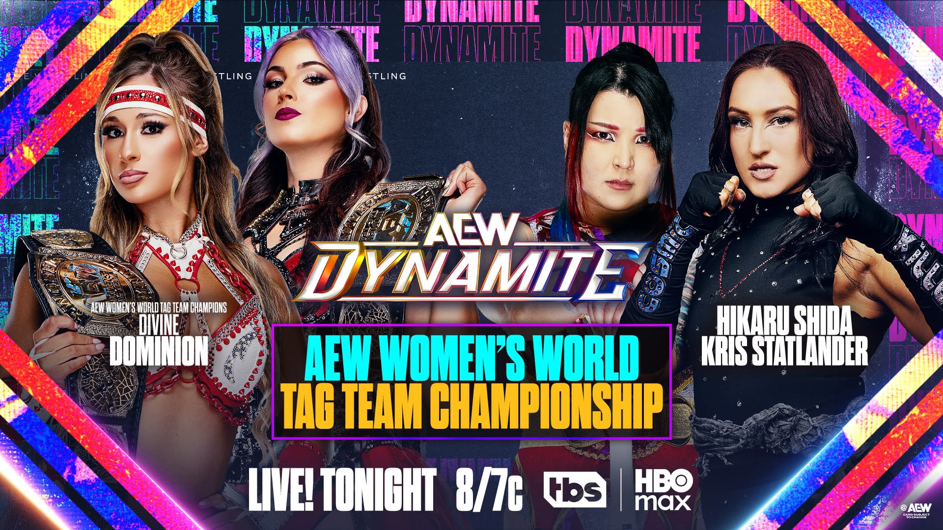 Since Shida's partnership with Kris Statlander began in its most recent iteration, the two have been undefeated as a team and in singles action. Before Statlander's win on Collision, Shida issued the challenge to Divine Dominion on behalf of herself and Stat, and the champions welcomed them to accept their fate.