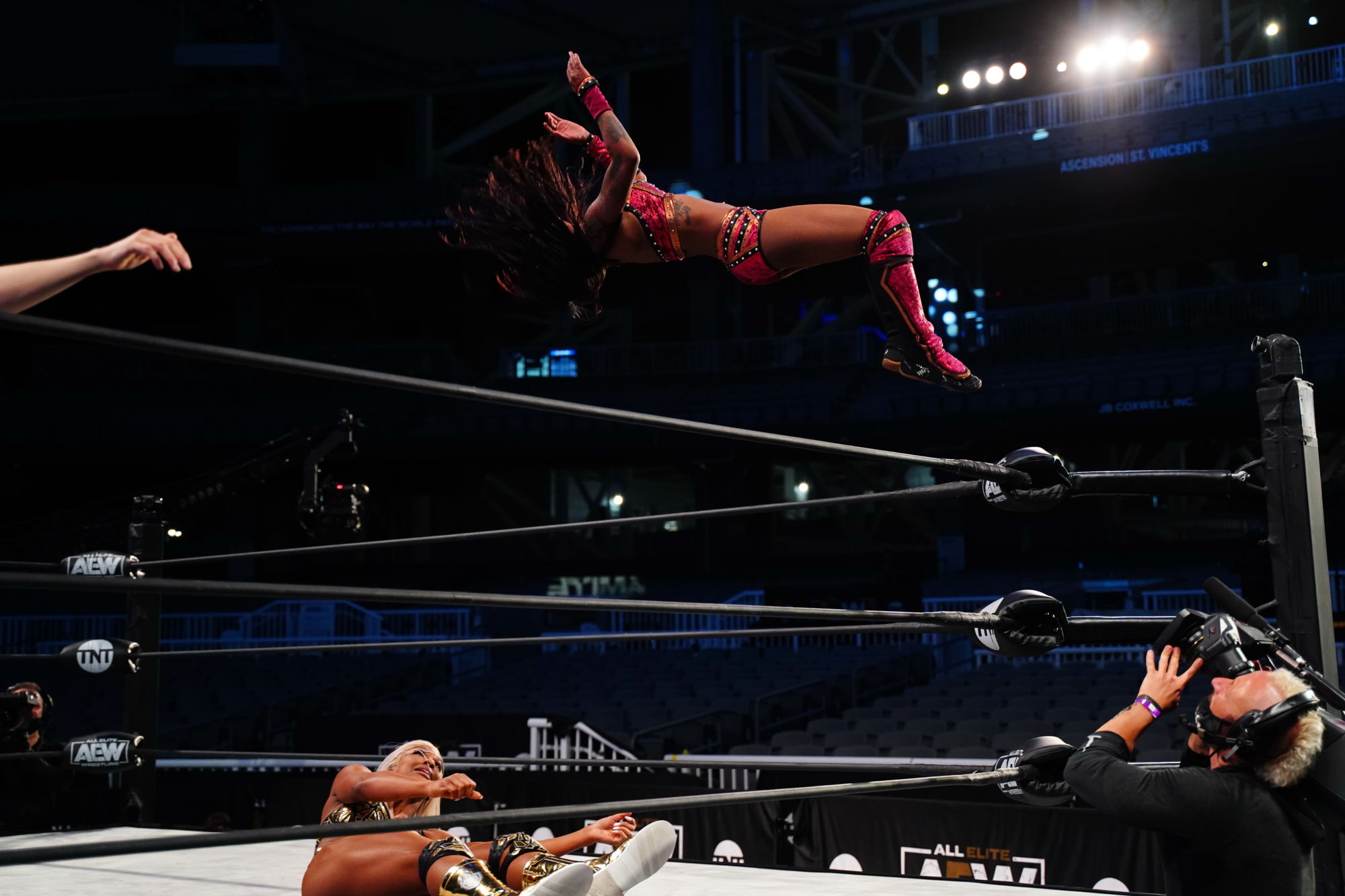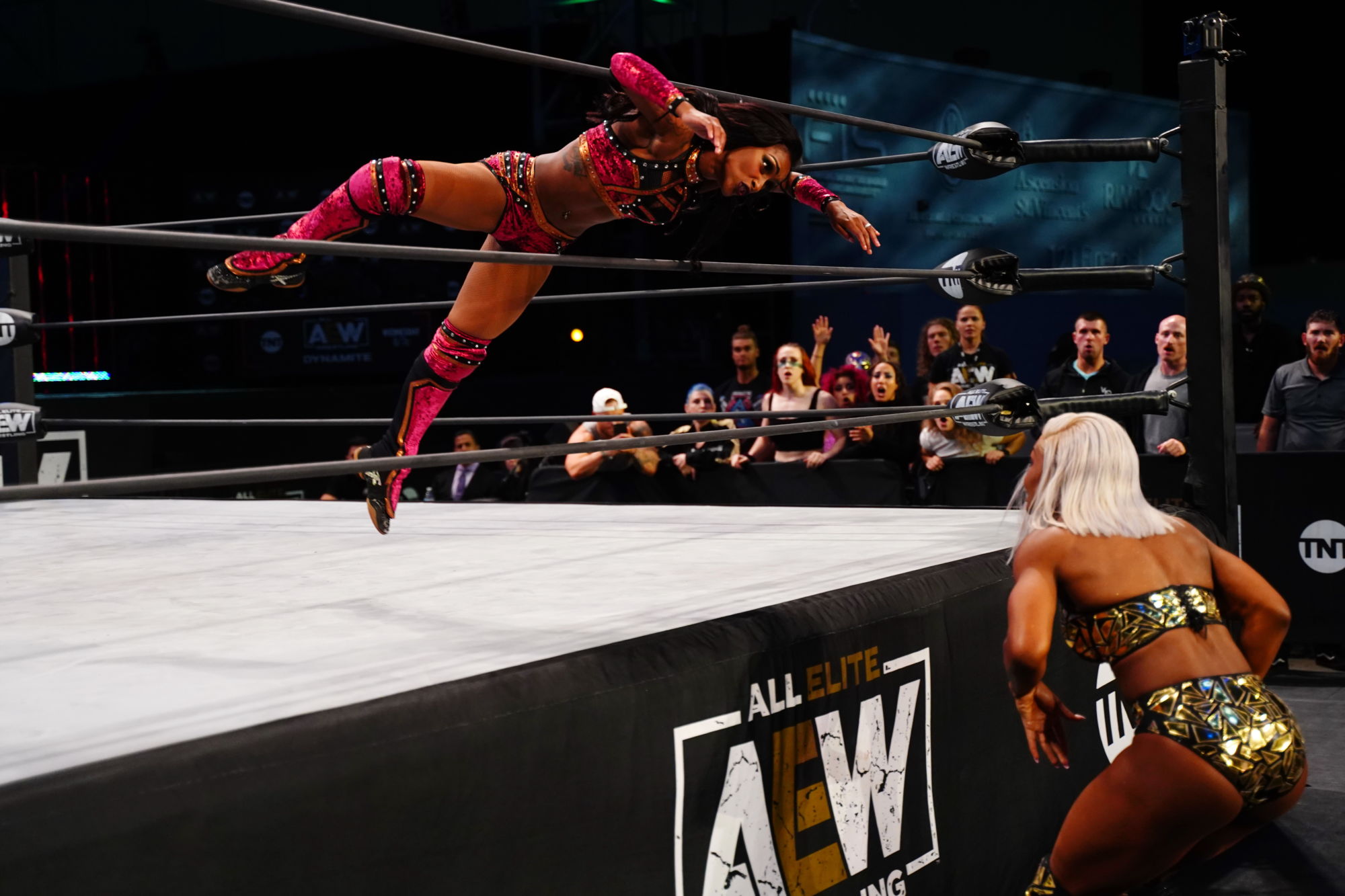 - Photo from Red Velvet vs. Jade Cargill for the TNT Championship on AEW Dynamite 4/14/2021 – will this be your next Zoom virtual background? [Photo Credit: All Elite Wrestling]