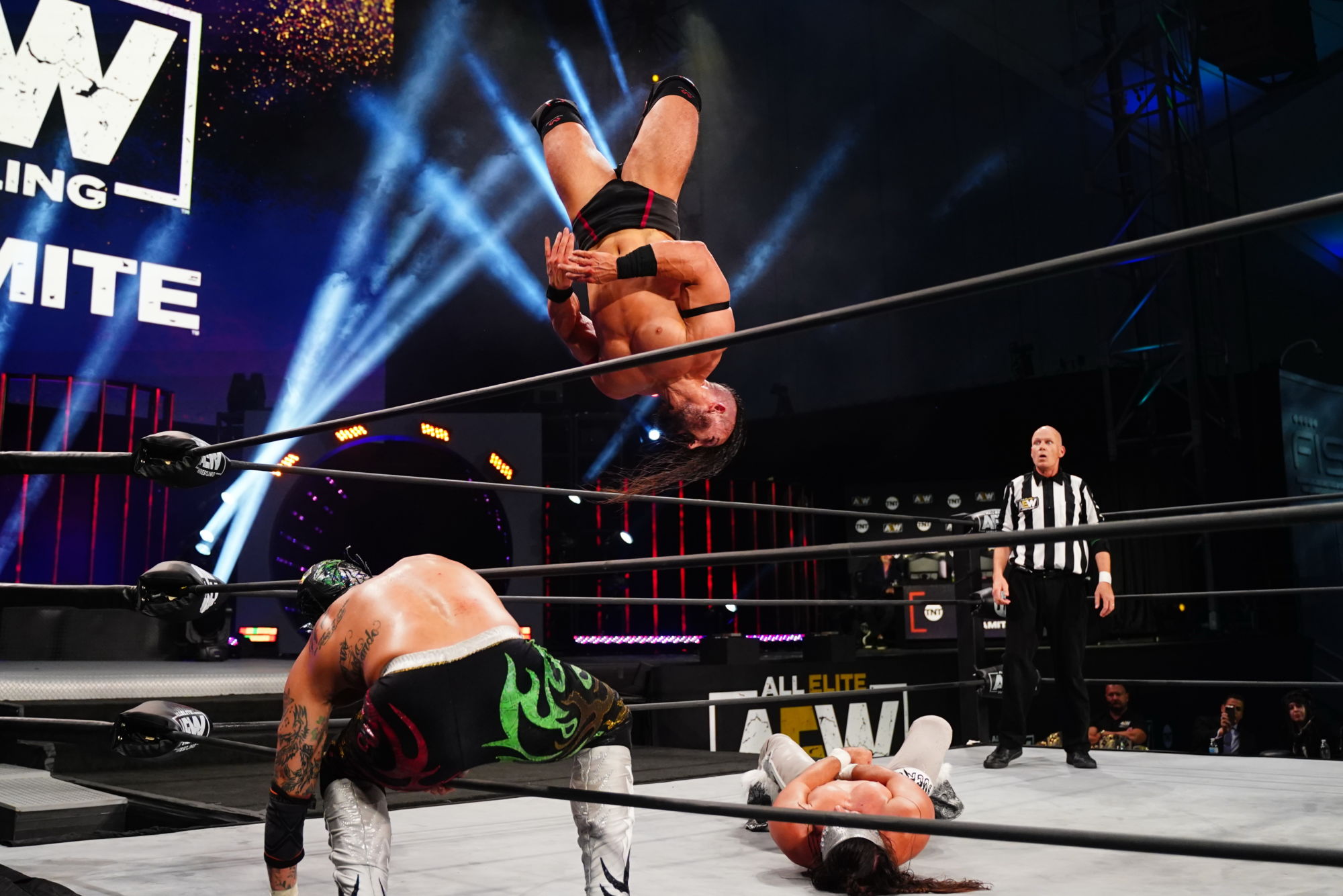 - Photo from Young Bucks vs. Pac and Rey Fenix for the TNT Championship on AEW Dynamite 4/14/2021 – will this be your next Zoom virtual background? [Photo Credit: All Elite Wrestling]