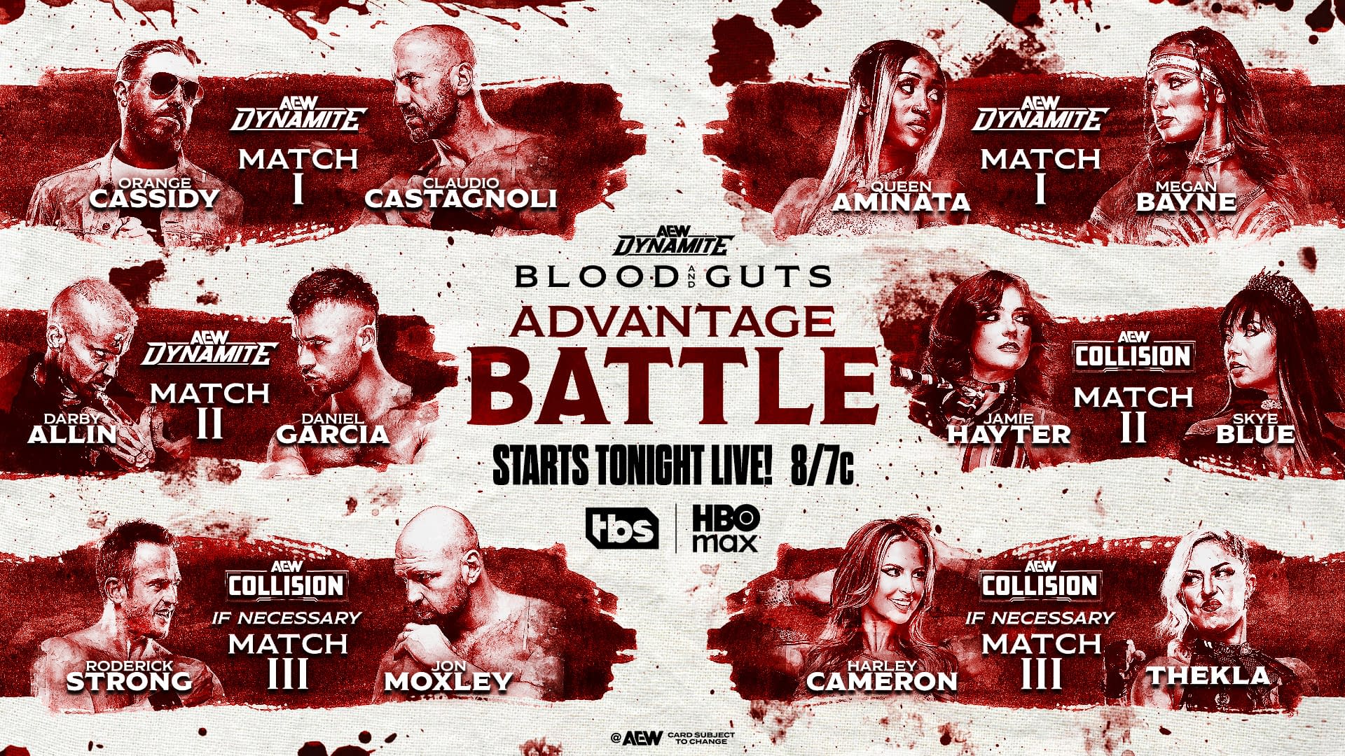 The Blood & Guts Advantage Battle represents a best-of-three series designed to determine which faction will possess the strategic benefit of entering first in next week's Blood & Guts match. Both the men's and women's divisions will participate in separate advantage competitions, with two matches scheduled for this evening's Dynamite broadcast.