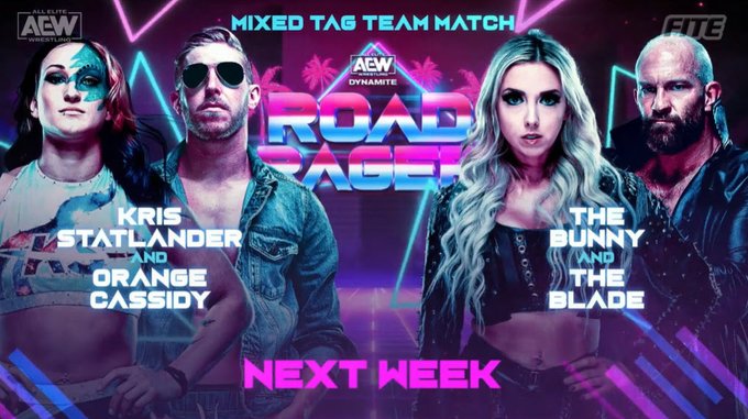 - Kris Statlander and Orange Cassidy will face The Bunny and The Blade in mixed tag team action at AEW Dynamite: Road Rager i n Miami.