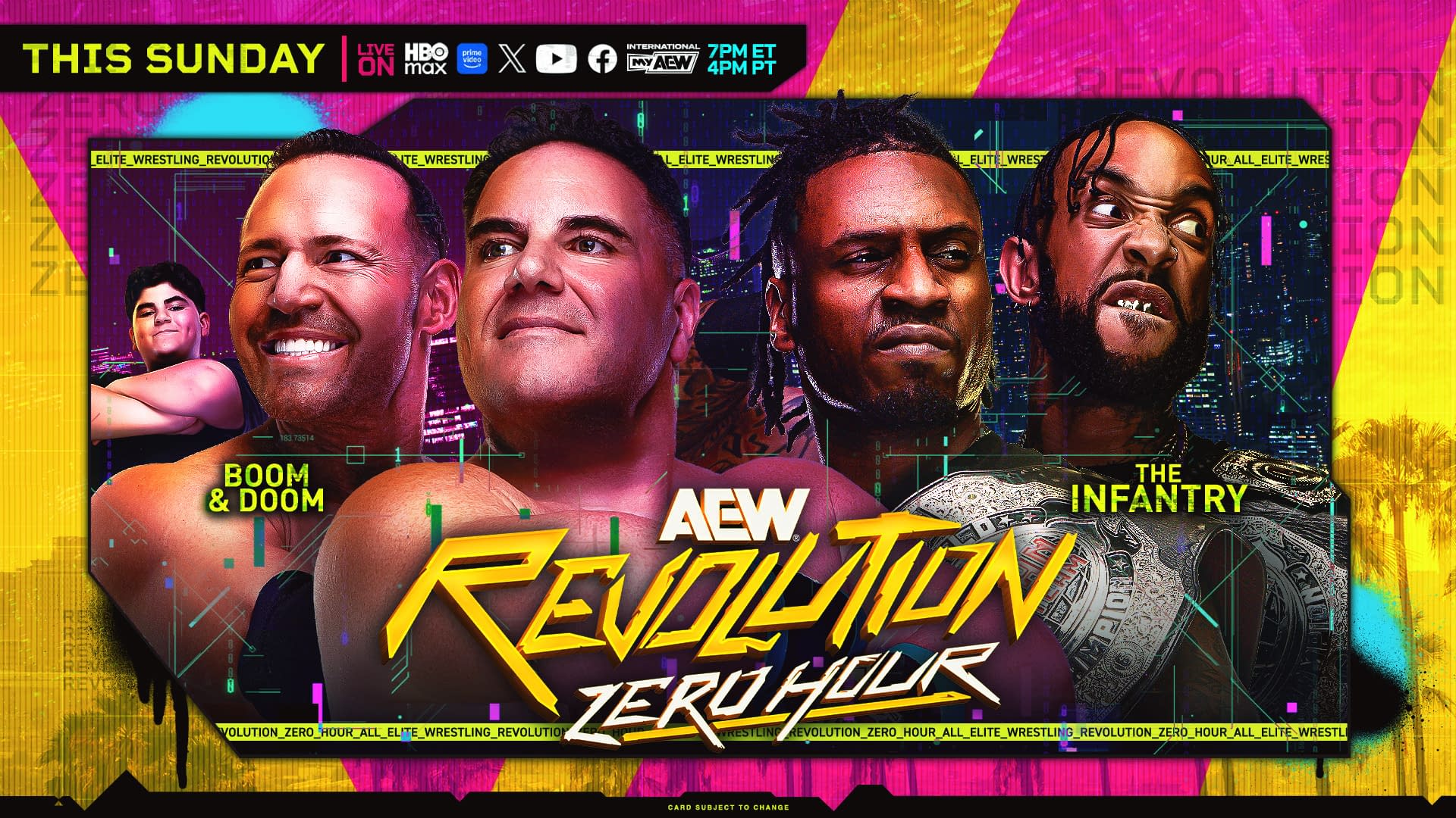 Start Time: 8 p.m. ET / 7 p.m. CT for the main Revolution card. AEW Zero Hour begins one hour earlier at 7 p.m. ET / 6 p.m. CT.