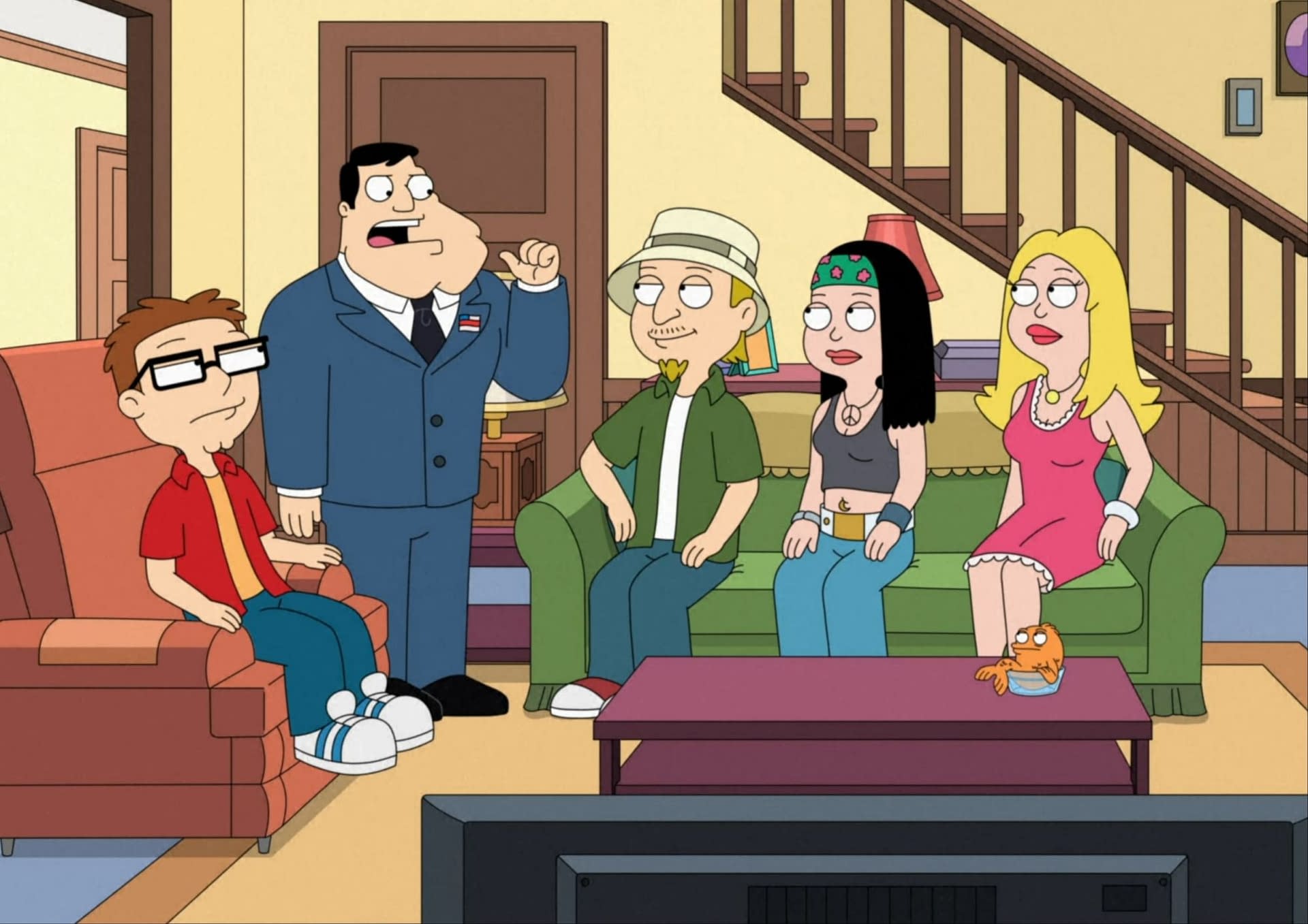 FOX's American Dad! centers on super-patriotic CIA agent Stan Smith (voiced by Seth MacFarlane) and the misadventures of his unconventional family in Langley Falls, VA. Stan applies the same drastic measures used in his job at the CIA to his home life, where Stan's blissfully unaware wife, Francine (Wendy Schaal), has an unfaltering loyalty that makes her blind to his unabashed arrogance. His left-wing activist daughter Hayley (Rachael MacFarlane), however, doesn't let him off so easily and knows just how to push her father's buttons, unlike her dopey, well-intentioned husband Jeff (Jeff Fischer), who doesn't know much of anything. Son Steve (Scott Grimes) is a geeky yet confident kid who spends his time playing video games and obsessing about the opposite sex. The Smith cabinet is rounded out by two rather unconventional members: Roger (MacFarlane), a sassy, sarcastic, and routinely inappropriate space alien, and Klaus (Dee Bradley Baker), an attention-starved goldfish with the brain of a German Olympic skier.