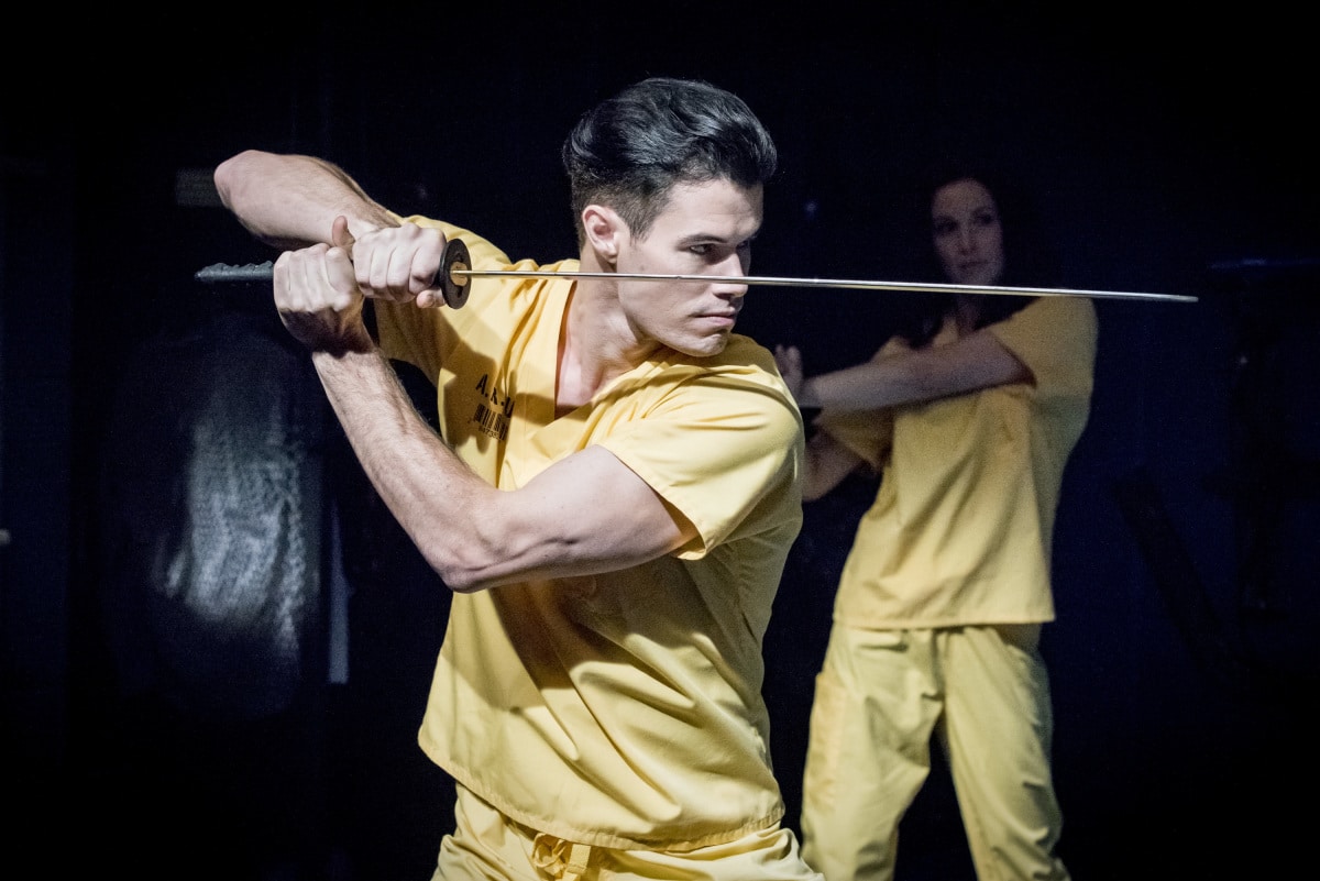 - Arrow — "Brothers & Sisters" — Image Number: AR714B_0117b — Pictured (L-R): Kirk Acevedo as Ricardo Diaz, Kelly Hu as China White and Liam Hall as Kane Wolfman — Photo: Dean Buscher/The CW — é 2019 The CW Network, LLC. All Rights Reserved.