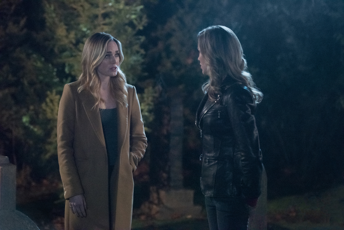 - Arrow — "Lost Canary" — Image Number: AR718A_0293r.jpg — Pictured (L-R): Caity Lotz as Sara Lance/White Canary and Katie Cassidy as Laurel Lance/Black Siren — Photo: Dean Buscher/The CW — é 2019 The CW Network, LLC. All Rights Reserved.