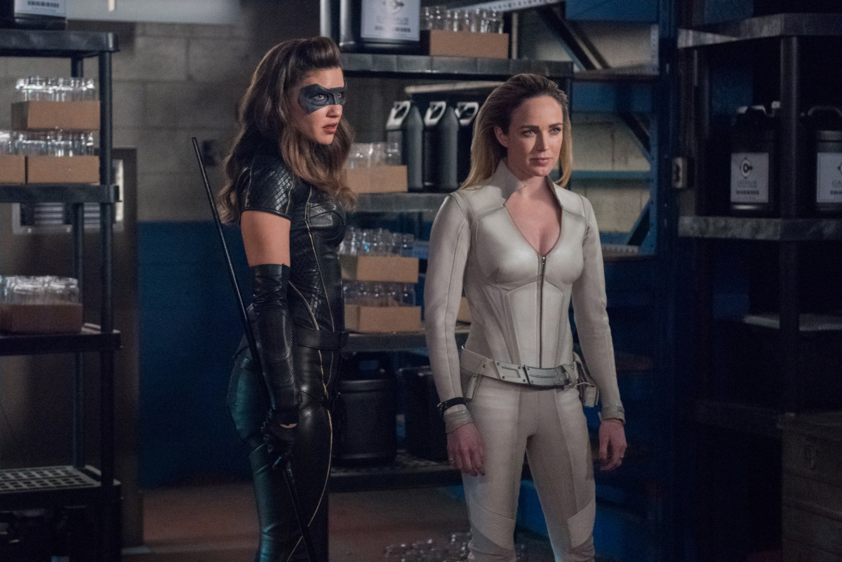 - Arrow — "Lost Canary" — Image Number: AR718B_0076r.jpg — Pictured (L-R): Juliana Harkavy as Dinah Drake/Black Canary and Caity Lotz as Sara Lance/White Canary — Photo: Dean Buscher/The CW — é 2019 The CW Network, LLC. All Rights Reserved.