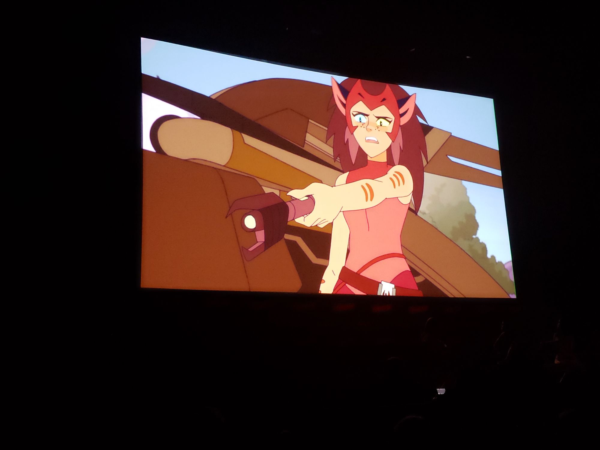 Carrero's Adora is a 16-year-old orphan raised by "The Horde" to fight against the rebellion, and who discovers the magic sword which transforms her into She-Ra. As a result, she abandons the evil Horde and takes up with the rebellion, fighting for the fate of Etheria. Stevenson and Carrero were joined by Karen Fukuhara (Glimmer) and Marcus Scribner (Bow) for the panel which offered a few clips from the pilot episode, including a sequence showing Adora as a young Horde fighter in a danger room/holodeck style training session with other cadets – including the cocky Catra, with who she shares a friendship akin to being siblings..