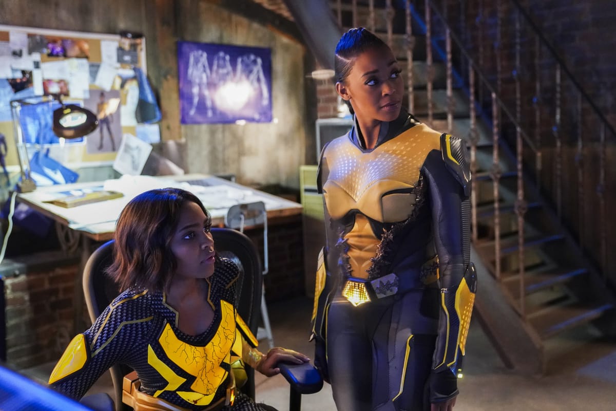 - Black Lightning — "The Book of the Apocalypse: Chapter Two: The Omega" — Image BLK216a_0236b.jpg — Pictured (L-R): China Anne McClain as Lightning and Nafessa Williams as Thunder — Photo: Eliza Morse/The CW — é 2019 The CW Network, LLC. All rights reserved