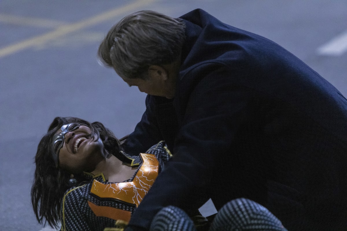 Did you really think we were going to stop there, Black Lightning fans? Here's a look at the official images for this week's second-season finale of CW's Black Lightning, "The Book of the Apocalypse: Chapter Two: The Omega":