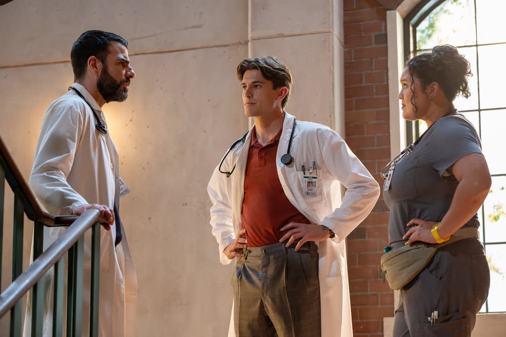 - "The Doctor's Graveyard" Episode 206 — Pictured: (l-r) Zachary Quinto as Dr. Oliver Wolf, Brian Altemus as Dr. Charlie Porter, Aury Krebs as Dr. Dana Dang — (Photo by: Pief Weyman/NBC)